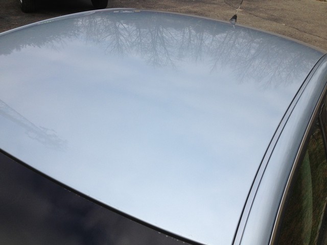 • The light blue paint is clean and shiny, with some minor nicks and scratches.
