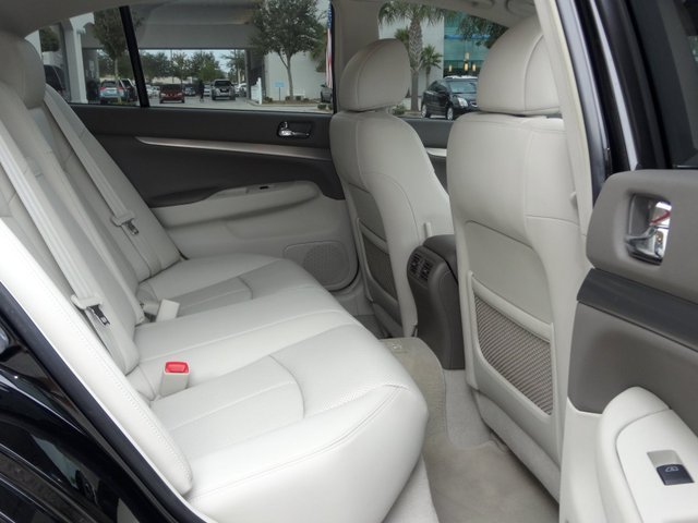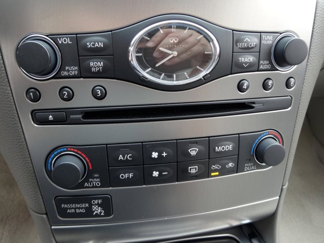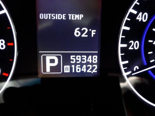 The options and features include: Dual-Stage Front Supplemental Airbags, Front Side-Impact Supplemental Airbags, HomeLink Universal Transceiver, Infiniti Advanced Airbag System, Infiniti Vehicle Immobilizer System, LATCH Child Safety Seat Anchors, Roof-Mounted Curtain Side-Impact Airbags, Vehicle Security System, 6-Speaker Audio System, 8-Way Power Driver's Seat w/Adjustable Lumbar, AM/FM Stereo w/CD/MP3 Player, Bluetooth Hands-Free Connectivity, Dual-Zone Automatic Temperature Control System, Infiniti Controller w/7-Inch Color LCD Screen, Power Windows w/One-Touch Auto-Up/Down, Radio Data System, Rear Window Defroster w/Indicator Light & Timer, Rearview Monitor, Steering Wheel-Mounted Cruise Control, Tilt & Telescopic Steering Column, Auto On/Off Headlights, Front Fog Lights, Intelligent Key w/Illuminated Push-Button Ignition, Power Exterior Mirrors, Remote Keyless Entry System, Remote Power Door Locks w/Auto-Locking Feature, Speed-Sensing Intermittent Windshield Wipers, 4-Wheel Disc Anti-Lock Brakes, Electronic Brakeforce Distribution & Brake Assist, Tire Pressure Monitoring System, Vehicle Dynamic Control & Traction Control, Vehicle-Speed-Sensitive Power Steering