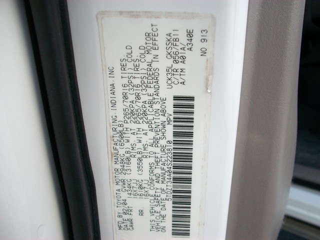 • VIN: 5TDZT34A04S223810