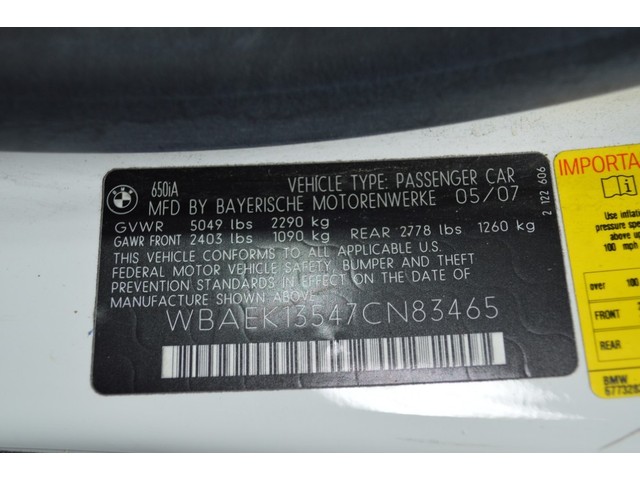 2007 BMW 6-Series 650i // HUD // Navigation // Cold Weather // Xenons