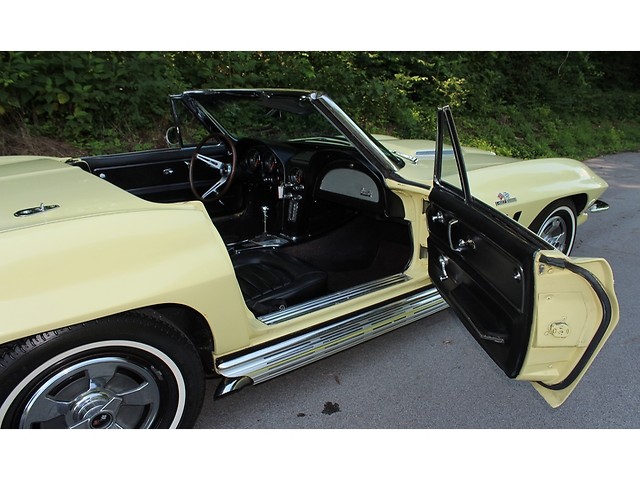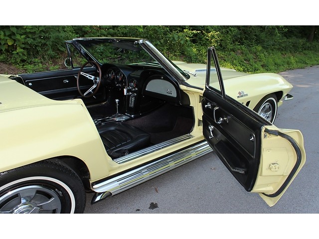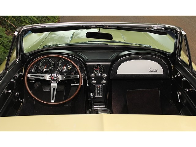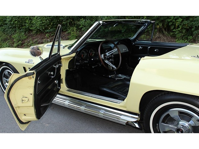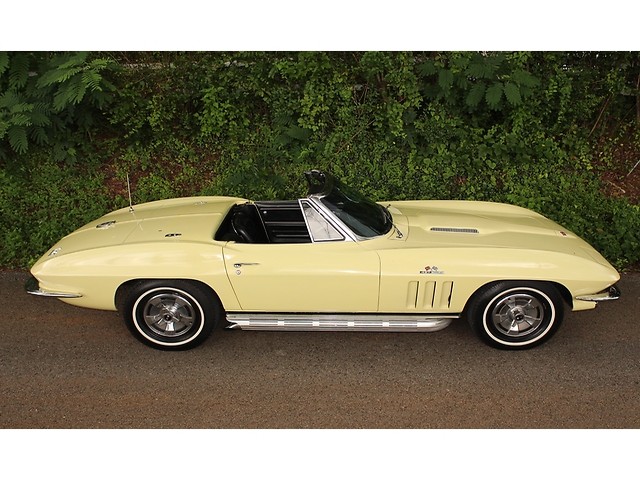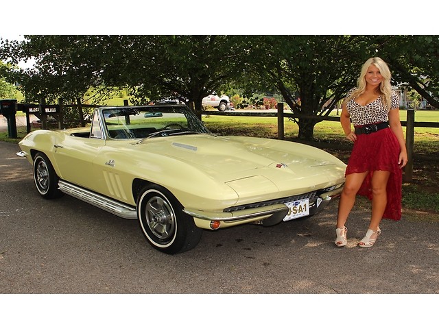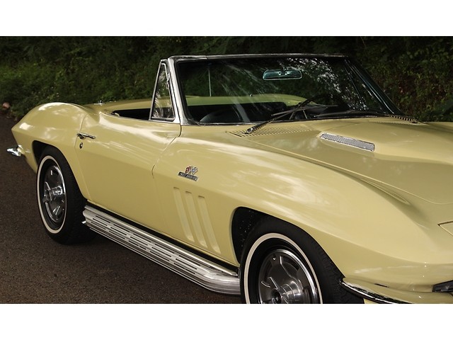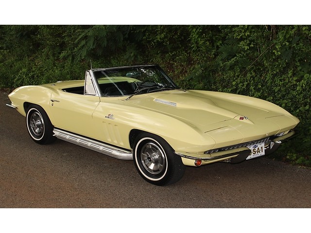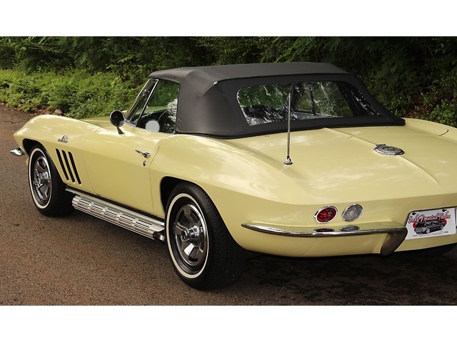Up for sale we have a 1966 Chevy Corvette Convertible. The ’66 is classed as a C2 for second generation also known as a Sting ray. The C2 was offered from 1963-67. The big change from the ’65 model was the new grill and an emblem in the corner of the hood. On the inside you could get Head Rest as an option. They also kept the side pipe option from ’65. The one we have for you is done in Lemonwood Yellow and is powered by the big block. In the paragraphs to follow we will give a brief description on the exterior, interior, and heartbeat of the Chevy, but first we would like to tell you a little about us.
