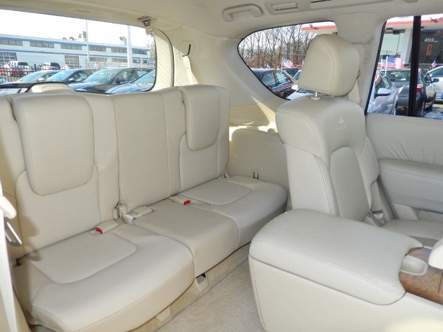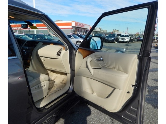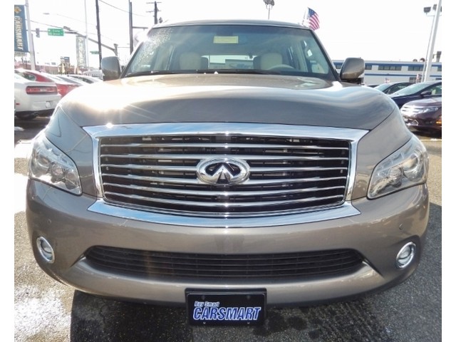 This QX56 4-wheel drive model is equipped with a 5.6L 8-cylinder engine and a 7-speed automatic transmission with manual mode. It's a powerful, luxurious SUV yet offers smooth maneurvability and a comfortable ride for its large size. Highlight features include a navigation system, a Bose speaker system, Bluetooth connection, SiriusXM satellite radio, auxiliary audio and video inputs, heated and leather front seats and steering wheel, power-folding third row seats, a surround camera system, power windows, power door locks, power sunroof, privacy glass, luggage rack, running boards, fog lamps and much more. This new-arrival has just about everything you need and want but the only thing missing is you in the driver's seat! Give me a call today so we can put you behind the wheel of this QX56 as soon as possible!