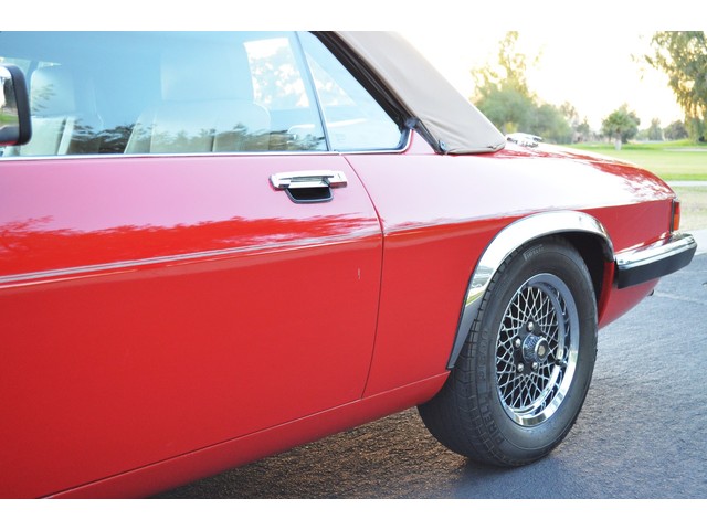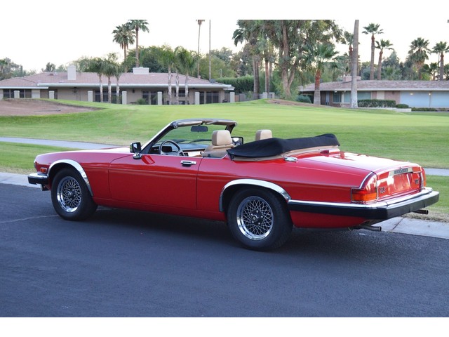 European Motor Studio is proud to offer this beautiful 1990 Jaguar XJS Convertible finished in Signal Red over Barley Connolly leather interior with a matching Barley covered softop. This XJS left the Browns Lane Coventry factory in January of 1990 and was invoiced to Jaguar North America that same month. The car was then imported into the Jaguar West Coast port and shipped to British Car Distributors on Van Ness in San Francisco where it sold to its first owner. The car is a three owner XJS and has always lived in the San Francisco/San Jose area its entire life until 2011 when the 3rd owner moved to Orange County. The car has always been serviced and maintained at the Jaguar dealership never skimping on maintenance. The car has a brand new factory correct softop which was installed Winter of last year. This XJS has only traveled 77,285 miles from brand new and looks absolutely beautiful. The Signal Red paint is all original and looks gorgeous, the paint still retains a beautiful shine and finish, free from any fade or peeling. The body of the car is near perfect and completely rust free. There is one small scratch about half of an inch long on the drivers door right under the pinstriping. All of the exterior chrome is still in outstanding condition, and free from any swirls or pitting. There is one small scrape out of the back right chrome taillight surround no bigger than a pinky finger nail and one small scrape out of the back driver side chrome fender molding. All of the rubber and glass still look to be completely original and all outstanding condition free from any scrapes or pitting. The original Connolly leather interior is gorgeous showing very minimal wear. The drivers seat bolster shows very little wear and completely free from any discoloration or rips. The drivers seat just shows very light creasing, but still has very soft and supple leather. The passenger seat looks excellent and only shows very small wear marks. All of the wood is original and still retains a very nice dark color, and almost free from any cracks. The carpets look beautiful and are stain and tear free. The interior trim and switch gear are all intact and free from any damage or wear. The convertible top is a brand new factory top with a new headliner and looks perfect. All of the electronics are working properly, all of the interior and exterior lights work, the convertible top goes up and down and in sync with the rear power windows. Both windows work along with both driver and passenger mirrors. The driver and passenger heated seats appear to be working and along with the cruise control. The AC is blowing ice cold on all of the fan speeds, the heater is working as it should, and the original Jaguar radio is still intact and working alongside the original working power antenna. The XJS still retains its original factory chrome lattice sport wheels, and tires that have about 60% tread life left. Mechanically this XJS is fantastic, it starts right up and runs and drives like a Jaguar V-12 should. It has endless amount of power and is incredibly smooth. It idles beautifully and without any smoke or hesitation. The transmission goes into gear without any problems and shifts very smooth. The brakes are excellent and precise without any fade or grinding. The steering and suspension are nice and tight and free from any drifting, vibrations or noises. If you are looking for an exceptionally well maintained XJS Convertible in beautiful original condition this is it. The car is accompanied by its original owners manuals in its original green leather binder with its original Jaguar cut keys. Also has its original matching spare tire with its original jack. Draped in a fantastic color combination of Signal Red on Barely, you can hardly beat the lines of an iconic Jaguar Convertible. This car comes with a clear and clean title free from any damage.