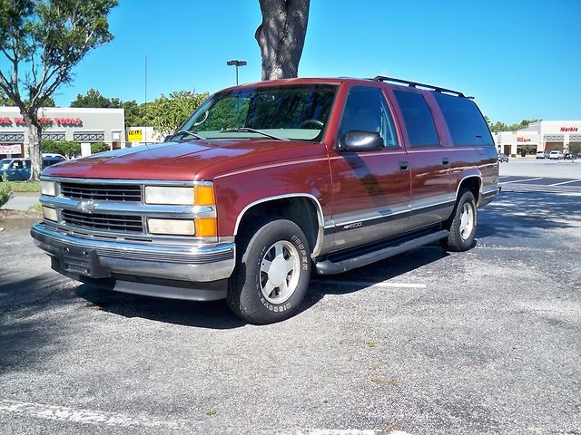 THIS IS A 1998 CHEVROLET SUBURBAN 1500, HAS A CLEAN CLEAR ACCIDENT FREE CARFAX REPORT, SHOWS TO BE A ONE OWNER VEHICLE, HAS THE 255 HP VORTEC 5.7 LITER V8 ENGINE, LT PACKAGE, AUTOMATIC, ICE COLD A/C (DUAL A/C) LEATHER INTERIOR (NICE SHAPE, EXCEPT DRIVERS SIDE, SHOWS SOME WEAR, SEE PICTURES), POWER SEATS, TILT WHEEL, CRUISE CONTROL, FACTORY RUNNING BOARDS, TOW PACKAGE, POWER WINDOWS, POWER DOOR LOCKS, THIRD ROW SEATING, ALLOY WHEELS, ROOF RACK, PREMIUM SOUND FACTORY GM RADIO WITH AM/FM C/D AND CASSETTE, INSIDE DOES NOT SMELL LIKE IT HAS EVER BEEN SMOKED IN, THE EXTERIOR IS CLEAN, GREAT LOOKING TRUCK AND PAINT LOOKS TO BE ORIGINAL, NO DAMAGE, THE HOOD AND THE ROOF HAS SOME SUN FADING ON THE PAINT, APPEARS TO BE NO RUST ON THE TRUCK, THE ENGINE RUNS GREAT, THE TRANS SLIPS IN 3RD GEAR, NOT SURE IF IT CAN BE REPAIRED OR YOU MAY HAVE TO REPLACE IT WITH A USED ONE. I WAS ABLE TO DRIVE IT APPX 10-15 MILES, BUT WOULD NOT RECOMMEND A LONG TRIP IN IT, UNTIL IT WAS LOOKED AT OR REPAIRED. THERE IS NO CHECK ENGINE LIGHT ON, AND THE TRUCK LOOKS LIKE IT WAS GARAGE KELT AND WELL TAKEN CARE OF, EVERYTHING WORKS, INCLUDING THE POWER WINDOWS, THE A/C IS COLD, POWER SEATS, RADIO ETC. WOULD MAKE A GREAT TRUCK, VERY HARD TO FIND THIS CLEAN AND RUST FREE, NADA VALUE IS $3,550 BUT WE ARE STARTING IT OFF AT ONLY $99.00 WITH NO RESERVE, SO THE LAST BIDDER WILL OWN IT, PLEASE ONLY BID IF YOU ARE SERIOUS, IF YOU NEED A SHIPPING QUOTE, OR HAVE ANY QUESTIONS, PLEASE CALL ME AT 1-904-303-8910, THANKS AND GOOD LUCK WITH THE AUCTION.