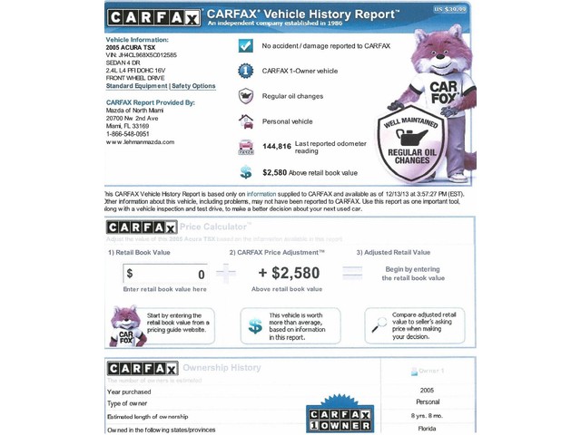 2005 TSX CARFAX CERTIFIED ONE FLORIDA OWNER EXCELLENT CONDITION HWY MILES