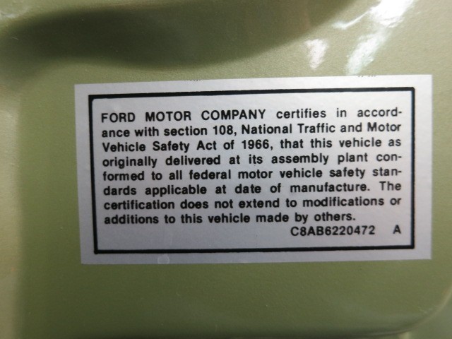 Transmission: Automatic Engine: 8 Cylinder, 289 C.I. V-8 Exterior Color: "Inverness Green Poly"