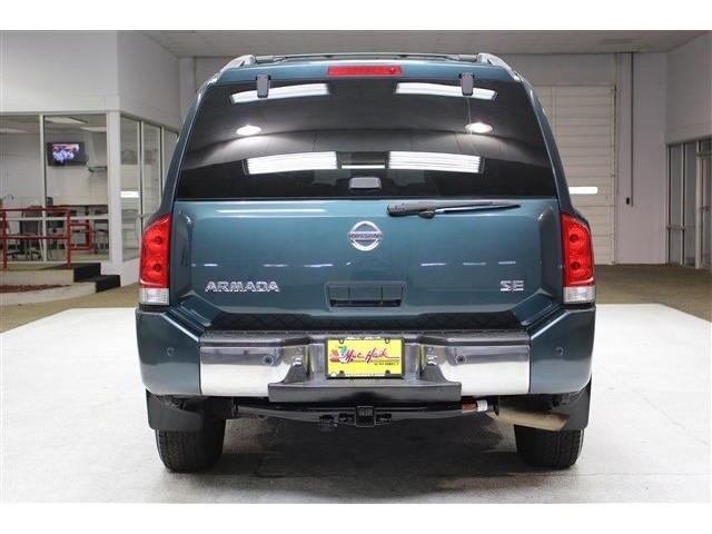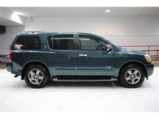 Are you interested in a simply outstanding SUV? Then take a look at this stunning-looking 2005 Nissan Armada. J.D. Power and Associates gave the 2005 Armada 4 out of 5 Power Circles for Overall Performance and Design. It is nicely equipped with features such as Armada LE, 5.6L V8 SMPI DOHC 32V, 5-Speed Automatic with Overdrive, RWD, 10 Speakers, 3.357 Axle Ratio, 3rd row seats: bench, 4-Wheel Disc Brakes, ABS brakes, Adjustable pedals, Air Conditioning, AM/FM radio, Anti-whiplash front head restraints, Auto-dimming Rear-View mirror, Auto-leveling suspension, Bodyside moldings, Bose AM/FM 6-Disc In Dash CD Audio System, Brake assist, Bumpers: chrome, CD player, Delay-off headlights, Driver door bin, Driver vanity mirror, Dual front impact airbags, Dual front side impact airbags, Electronic Stability Control, Four wheel independent suspension, Front anti-roll bar, Front Bucket Seats, Front fog lights, Front reading lights, Fully automatic headlights, Garage door transmitter: HomeLink, Heated door mirrors, Heated Front Bucket Seats, Heated front seats, Illuminated entry, Leather Shift Knob, Leather steering wheel, Leather Trimmed Seats, Low tire pressure warning, Memory seat, Occupant sensing airbag, Outside temperature display, Overhead airbag, Overhead console, Panic alarm, Passenger door bin, Passenger seat mounted armrest, Passenger vanity mirror, Pedal memory, Power door mirrors, Power driver seat, Power passenger seat, Power steering, Power windows, Radio data system, Rear air conditioning, Rear anti-roll bar, Rear audio controls, Rear reading lights, Rear window defroster, Rear window wiper, Remote keyless entry, Roof rack, Security system, Speed control, Speed-sensing steering, Speed-Sensitive Wipers, Steering wheel mounted audio controls, Tachometer, Tilt steering wheel, Traction control, Variably intermittent wipers, and Voltmeter. Believe me when I say that you'll be just bowled over by how much you can pack into the caverous interior of this Armada.