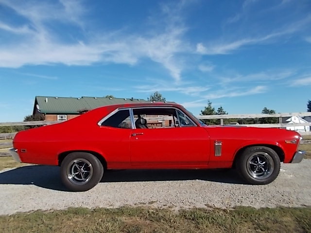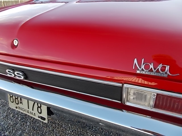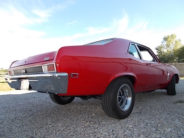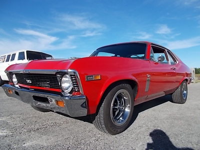 VERY NICELY RESTORED ALABAMA NOVA SS WITH LASER STRAIGHT BODY AND SLICK PAINT. ONLY RUST HOLE IT EVER HAD WAS A SPOT THAT IS FIXED ON LT QUARTER ABOUT 3". HAS REBUILT 71' 396 WITH 447 LIFT COMP CAM AND HY LIFTERS, 4BBL EDELBROCK, HEADERS, DUAL CHERRY BOMBS, 350 AUTO, 10 BOLT NON POSI HIWAY GEARED. 1000 MI ON CAR SINCE BUILT. HAS POWER STEERING, POWER DISC BRAKES AND WAS AN A/C CAR. HEATER BOX REMOVED TO FIT BIG BLOCK. I CANT PROVE ITS AN SS. LAST OWNER SAID HE KNEW THE 1ST OWNER AND TRUE SS BUT CAME NEW WITH 350. ALL THE SS STUFF THERE. RUNS AND DRIVES GREAT. I HAVE THE INNER AND OUTER HEATER/AC BOX AND IT CAN GO WITH CAR IF WANTED.