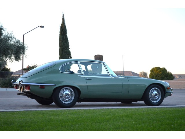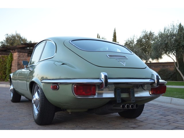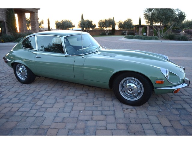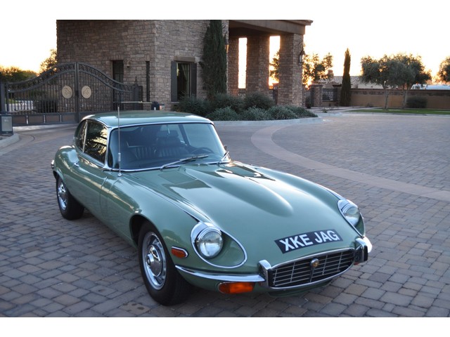 European Motor Studio is proud to offer this absolutely stunning and exceptional Willow Green on Black Connolly leather 1971 Jaguar XKE Series III V12 Coupe. This XKE left the Coventry Browns Lane factory in January of 1971 and is one of the very early Series III cars. The car was invoiced to Jaguar North America and sent to Sutherland-Marlow INC in Spokane Washington. The car sold to its first owner and lived in Washington until heading to Montana with its second owner where it lived until coming to AZ with its 3rd owner in the early 2000’s. The car is well documented with service history dating back to the 90’s and has seen the utmost care and correct maintenance since new. This XKE is finished in a stunning shade of Willow Green and is completely original in every way. The car has never been re painted or touched, except for a couple small stone chips in the front nose which have been touched up the paint looks beautiful for its age. One small scrape underneath the back left chrome bumper otherwise the paint still shows incredibly well. The gorgeous body is 100% straight and rust and damage free. The chrome is all original and in stunning shape, free from any pitting or hazing. The windshield rubber and bumper rubbers look to be original and do show some cracking but are still in good shape. All of the light lenses look excellent; the glass is all original and completely clear and free from any pitting or cracks. The interior is still finished in its original black Connolly leather and looks beautiful. The front seats show very little wear and still feel nice and supple. The carpets are the original Wilton brand and still in exceptional condition. The floor mats are the original mats specifically made for the V12 and look exceptional. The dashboard looks beautiful and is all original, the chrome and the switchgear are all original and still in fantastic condition. All of the gauges and electronics are in working condition, all of the lights are working, the turn signals, the side marker lights, brake lights, headlights, reverse lights, interior lights, and all of the dash lights are all in working order. The wiring harness has just been sorted and many different wires have been replaced, the choke cable and light are new, all of the exterior lights have just been re wired and are working correctly. This XKE’s glorious 5.3 litre V-12 starts right up and once warmed up the car runs and drives incredible. The V12 has incredibly smooth acceleration and a glorious rumble out of the quad exhaust tips. The engine has just been recently tuned up and serviced by a reputable Jaguar repair shop here in Phoenix. The transmission shifts very smoothly, goes into gear with ease, and free from any grinding or clunking. The brakes are in excellent condition, the brake booster, brake lines, and rear brake pads have been replaced. The steering in so precise and tight, the car does not shimmy or drift. The sway bar rubber bushings have just been replaced, as well as an alignment and the handling is outstanding on this car. The suspension is very tight and free from any unusual noises or thumping. The car is extremely tight and smooth, and at 70mph down the freeway everything feels so dialed in and correct. This E-Type comes with its original owners manual and warranty book. Two sets of original Jaguar keys, original Blaupunkt radio and original spare tire. There is also a fairly extensive service file on the car dating back to the 90’s. The body and undercarriage is completely rot and rust free and have never been touched. The original steel wheels are in beautiful condition and free from any curb rash or markings and covered in a brand new set of 4 Dunlop Sport tires. If you are looking for a completely original unmolested rust and rot free Jaguar Series III V12 Coupe with excellent provenance in a gorgeous and rare color this is it. These S3 Coupe’s are hard to find in this kind original condition especially one that is documented.