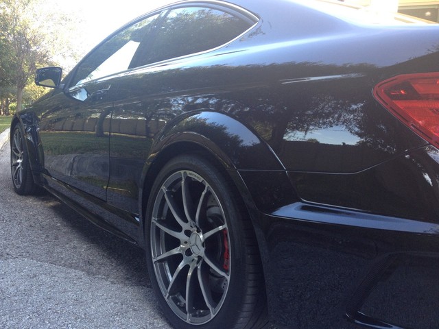 This C63 AMG Black Series is awesome! It is finished in Obsidian Black over Black MB Tex/Dinamica with Red stitching. It has a nice options list including: Rear Seat Configuration, AMG Performance Media and AMG Illuminated Sills. In addition, it has the Black Series Package ($43,570) which increases hp to 510, torque to 457 lb. ft. It has a wider suspension Track with a 3.1" wider rear, AMG Compound Brake System and tons more!