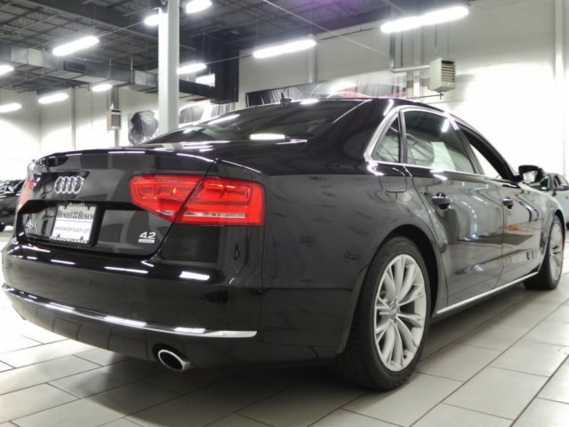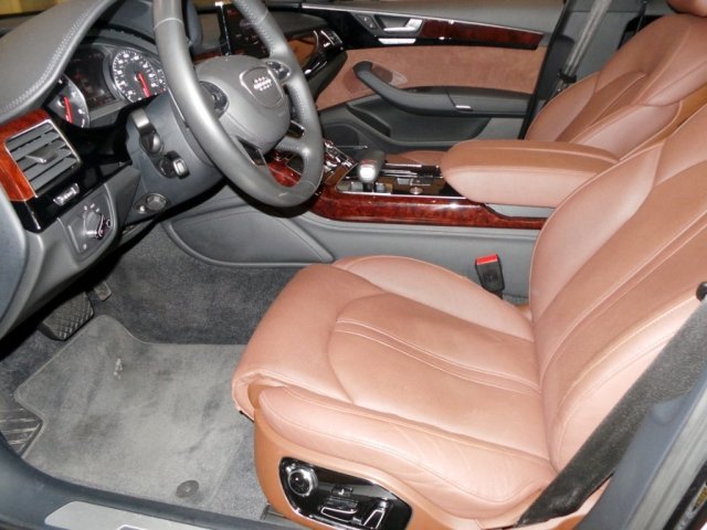 THIS ELEGANT 2012 AUDI A8L 4.2L QUATTRO IS IN BEAUTIFUL PHANTOM BLACK PEARL EFFECT METALIC PAINT WITH A VERY RICH NOUGAT BROWN LEATHER INTERIOR AND BLACK ALCANTARA HEADLINER.  THIS VEHICLE IS OFFERED WITH AN AUDI CERTIFIED PRE-OWNED WARRANTY.