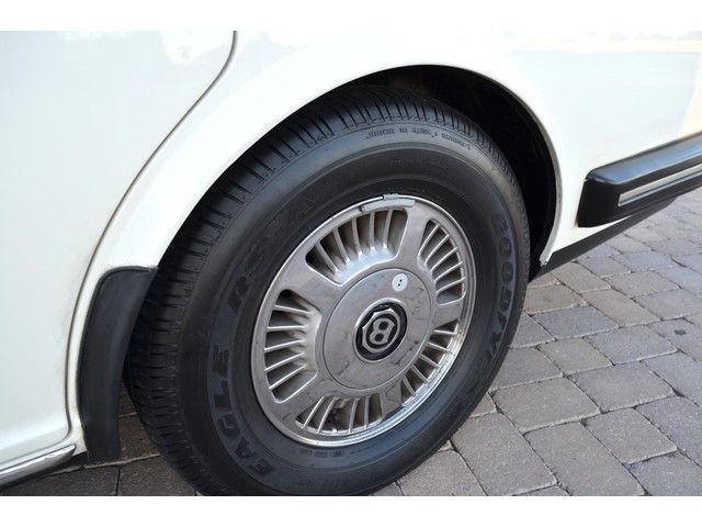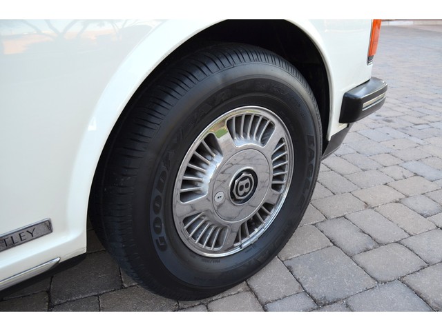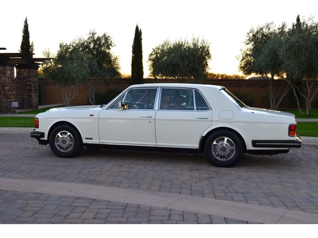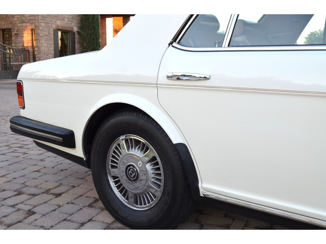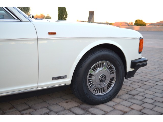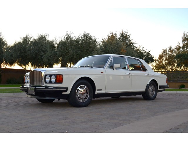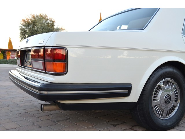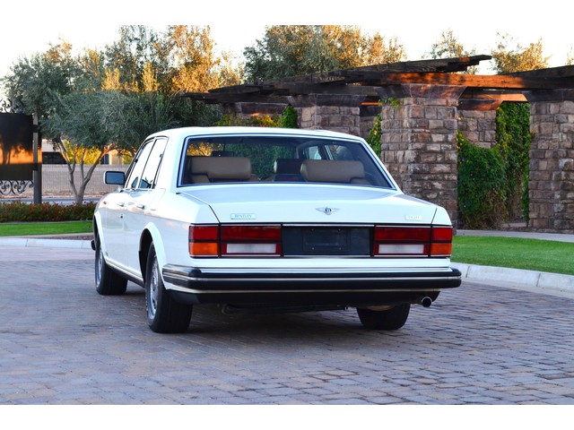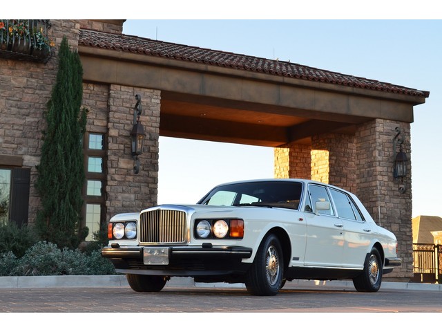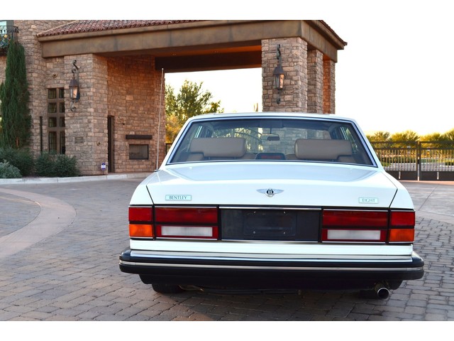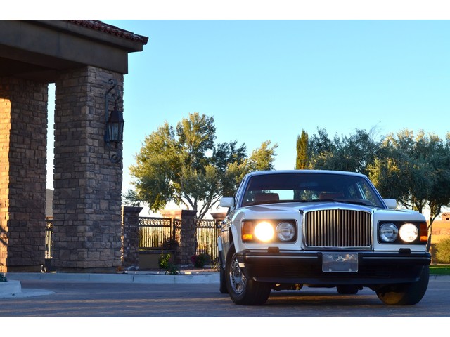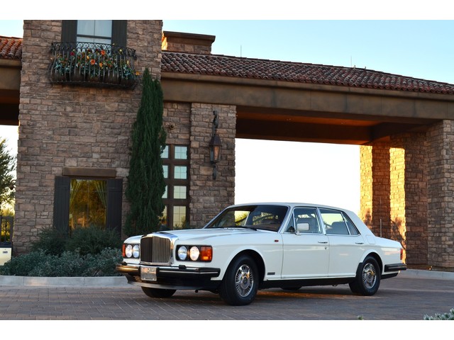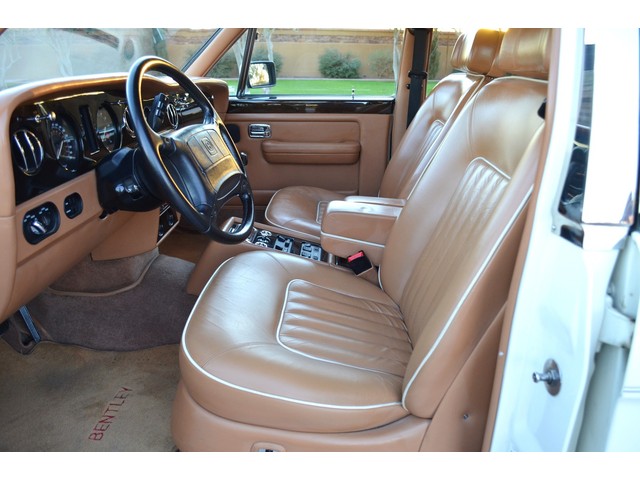 European Motor Studio is proud to offer this exceptional Acrylic White over stunning Parchment Leather 1990 Bentley Eight Saloon. This gorgeous motor car left the Crewe factory in late 1989 and was invoiced to Bentley/Rolls Royce North America. The car was then sent to Newport Auto Center Rolls Royce Bentley of New Port Beach CA where it sold to its first owner on March 13, 1991 in the amount of $115,590 including the optional Connolly leather hide headliner. The first owner also had the front grille replaced at the dealership with the factory Mulsanne Saloon chrome slatted grille. The first owner lived in the Laguna Beach area with the car until the second owner took possession of the car and brought it to Palm Springs. The car has lived in either Orange County or Palm Springs its entire life until European Motor Studio brought the car to AZ. This is an absolutely meticulously maintained Bentley Saloon since brand new and has every single piece of documentation and service history to go with the car. This stunning Eight Saloon is 100% original and unmolested in every possible way, it never been involved in an accident or has ever seen any kind of damage. All of the original equipment is still with the car, including all of the original owners handbooks and case, warranty books, radio code cards, warranty cards, new ownership cards, Bentley accessories brochure, service book, dealer network book, radio book, 4 original Bentley keys with two remote fobs, original jack, tool kit and spare are all present with the car. The car even comes with the original pre delivery inspection report from the selling dealer, and original paperwork from the new car purchase. Every single electronic item on the car works as it was designed to. The windows, locks, mirrors, seats, memory seats, power radio antenna, cruise control, AC and heat, gauges and lights are all functioning. All exterior and interior lights are working; the original Pioneer factory radio is working as well as all of the speakers. The Acrylic White paint is 100% original in every way and has never been touched up or repainted. There are a few areas on the clear that are starting to lightly check, I tried to take close up pictures of the areas but it was extremely difficult to capture in the photos. All of the chrome and trim on the exterior are all original and in beautiful condition and completely free from any damage or pitting. The glass on the car is completely clear and free from any pitting or cracks. The wheels are the original factory chrome Bentley sport wheel and still have a beautiful shine to them and free from any curb rash. The tires are newer with about 60% tread life left. This Eight Saloons interior is absolutely exquisite, its looks almost showroom new. The 100% original Parchment Connolly leather is so soft and supple, and shows almost no signs of any wear or creasing. The beautiful contrasting off white piping on the seats look almost new and stills retains its original color. The carpets are the original Wilton wool, and although not perfect, still show beautifully along with the original floor mats. The wood grain looks almost perfect; there are no cracks in any pieces of the wood. There are a couple tiny little pits in the driver’s door but so minimal you would have to look up close. All of the interior chrome and switch gear still look almost new, there are no signs of wear or damage to any of the pieces and everything still fits and works well. The leather headliner is stunning and looks completely untouched. Mechanically this car is outstanding. The car starts right up, does not blow any smoke, and idles incredibly smooth. Acceleration is very crisp and smooth from the 6.75 litre V8 and the transmission shifts effortlessly. There are no problems going into gear, or any issues under acceleration. The suspension is nice and tight, free from any rattles or creaking. The brakes are excellent and show no signs of fade or squeaking. This Bentley Eight saloon has been maintained to the highest level and great pride of ownership is obvious when you see and drive this car. These are incredibly hard to find with any kind of history or service records to prove maintenance. The Bentley saloons offer some of the best value for the money, they are still hand built rather than assembled by robots, and offer the utmost refinement and elegance. This Bentley Eight has a clean and clear carfax and title.