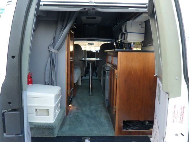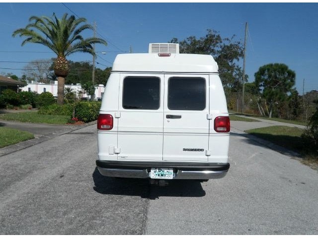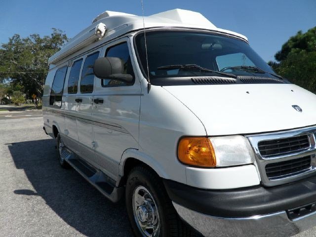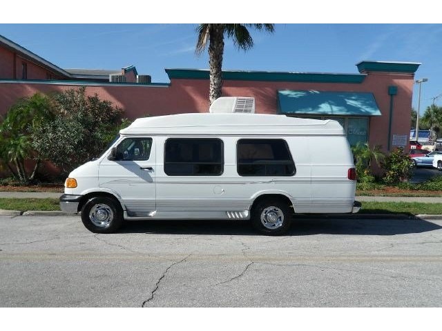 2003 Dodge Ram 3500 Class B Camper Conversion Van By Elk Automotive For Sale ( with only 32,219 miles). 5.9L V8 engine, automatic transmission, disc brakes, 16 chrome plated factory wheels with Michelin tires, tow package, classic white exterior with accenting pinstripe graphics package, running boards with molded steps, DMC high top roof with Norcold roof A/C and TV antenna, Horizon retractable side awning, remote mirrors, key-less entry, factory dash A/C, factory AM/FM/CD radio, captains chairs, cloth interior, fold out bed, removable table, flat screen TV, Voyager AM/FM/CD rear sound system, electric hook ups, coffee maker, refrigerator, sink with water tank, microwave, storage cabinets, porta potty with privacy curtain Don't miss your this chance to this high dollar conversion for a fraction of its original cost. This van is ready to hit the road, are you?