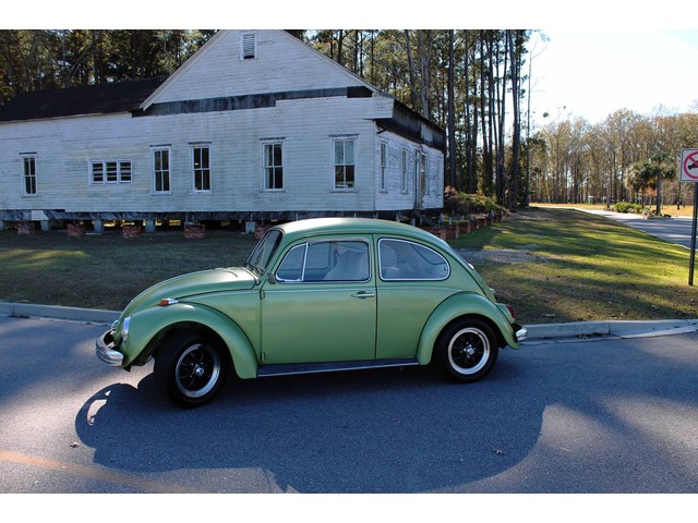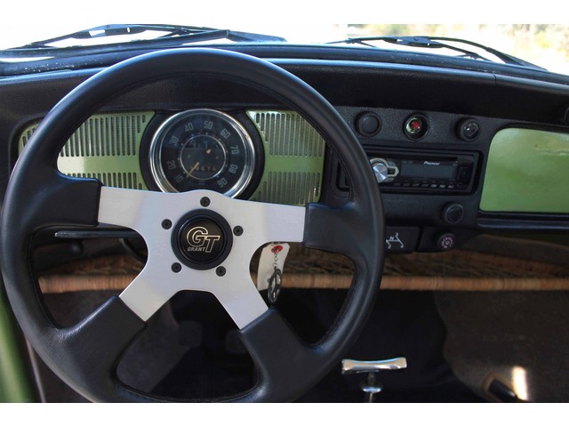 Check out this cool little bug!  The paint is a really neat shade of green.  Combined with the black wheels and cream interior this car is really unique and draws tons of attention.  The stance of this car really enhances the look as well.  A lot of work has gone into this bug to get it where it is today as you can tell from the pictures.