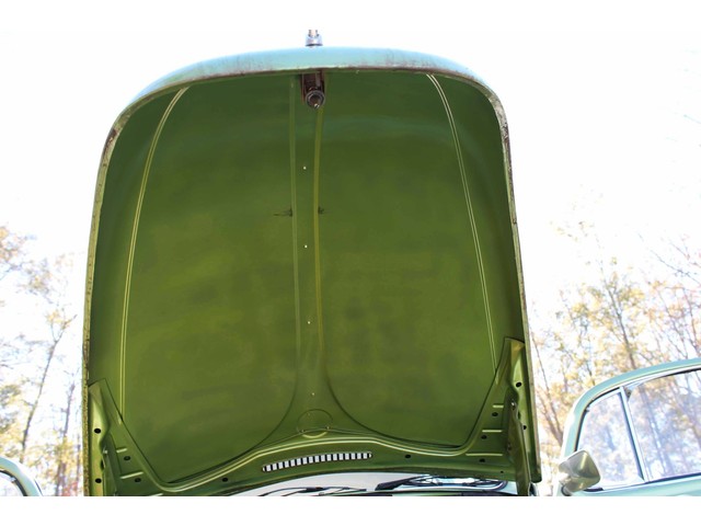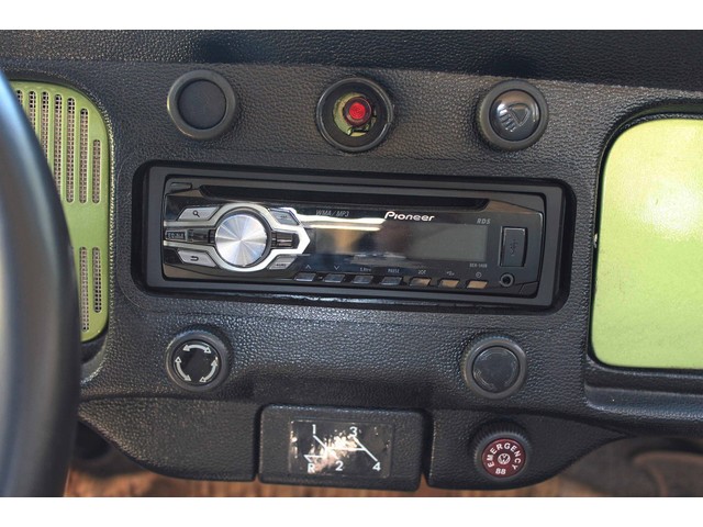 The paint is in good shape with just normal wear and tear.  There are no major dings, scratches, dents, etc.  The paint gleams in the sun and like mentioned before has a good tone to it.  The interior is really clean and the cream white looks so good against the green.  It is equipped with a CD player and a speaker system in the trunk.  Everything is working and operates as it should.