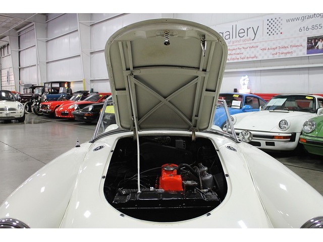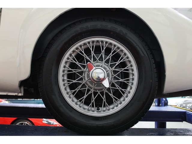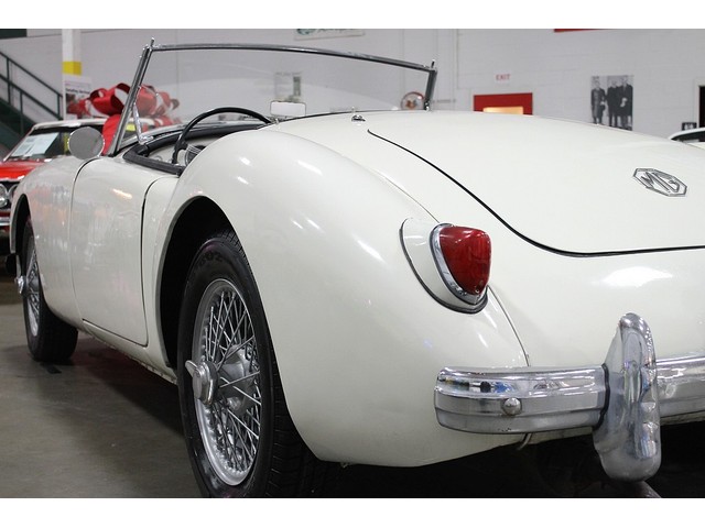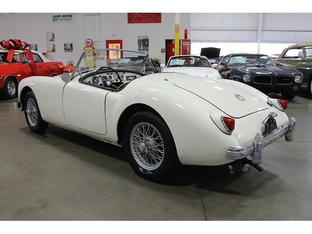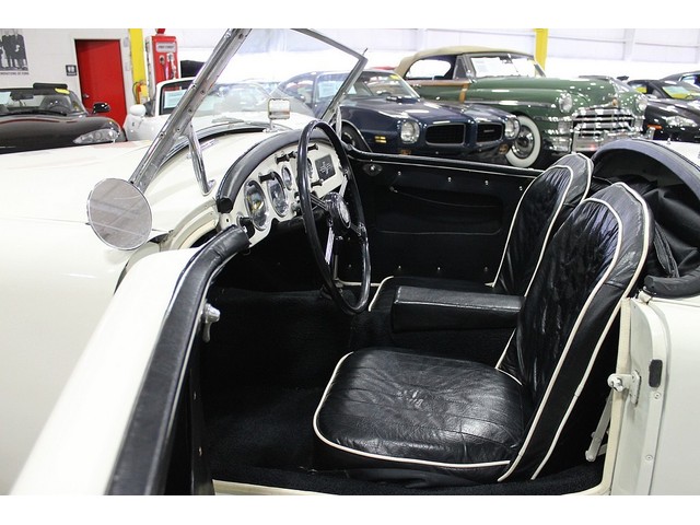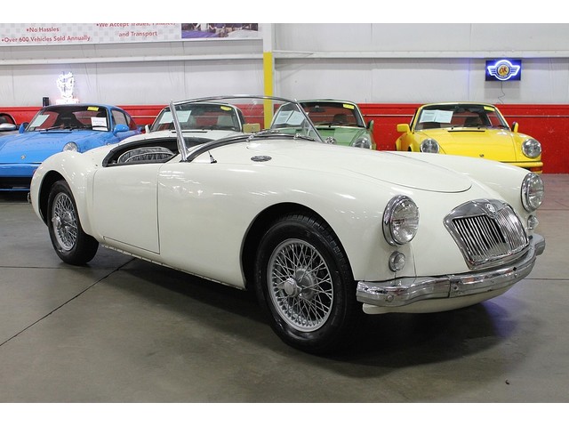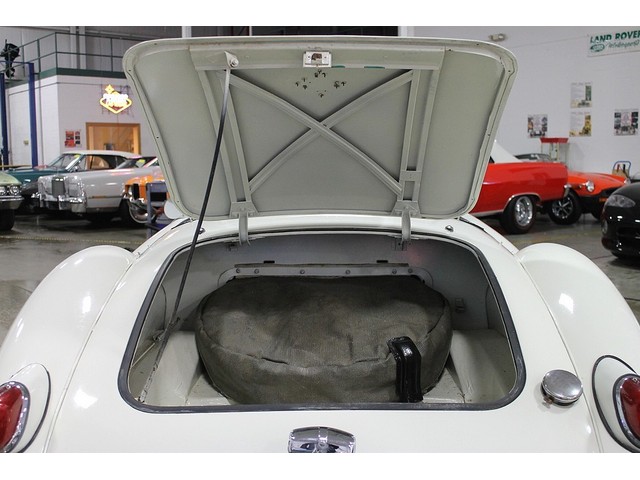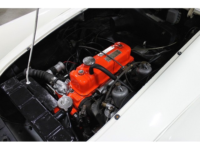 The highly original 1956 MGA offered here is an excellent running and driving example that retains an outstanding core structure as it is apparent that the body has never been taken off the frame. The motor has been through a recent top end freshening, new plugs, wires, distributer and new brake slave cylinder. The body, although not without some bumps and bruises, remains extremely solid and rust free and rides on optional wire wheels. Evidence points to one older repaint from its original factory, “Tyrolite Green” to “Old English White”. The interior appears to be very original and features its original “banjo” style steering wheel and black seats with white piping. The carpets are in good condition and may have been replaced at one time. The engine starts right up every time with no smoke, the car possesses good acceleration, smooth shifting, good braking and a tight suspension. The car also has a new convertible top and spare tire with original spare cover.