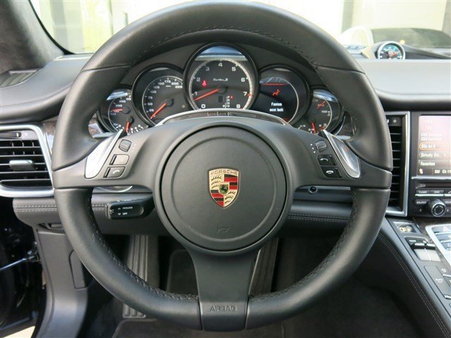 THE EXTERIOR OF THIS PANAMERA TURBO S IS IN IMMACULATE CONDITION. THE BASALT BLACK METALLIC PAINT SHINES BEAUTIFULLY AND THE HIGH GLOSS BLACK MONOCHROME EXTERIOR PACKAGE THAT INCLUDE BLACK BADGES AND BLACK TRIM LOOKS GREAT. THE 20" TURBO II WHEELS WITH RED CALIPERS GIVE THE CAR NICE CURB APPEAL.