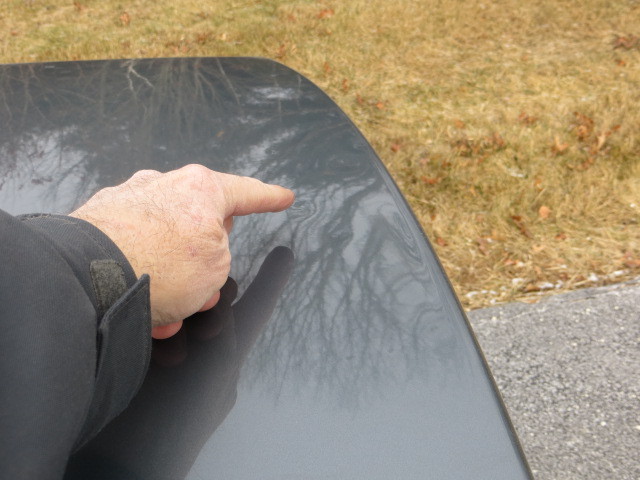 I have taken many pictures so you can make your own opinion about the paint and body.. To me it still looks very nice and in almost new condition.. At an angle you can see signs of a very whimpy hail storm.. The dings are very slight....