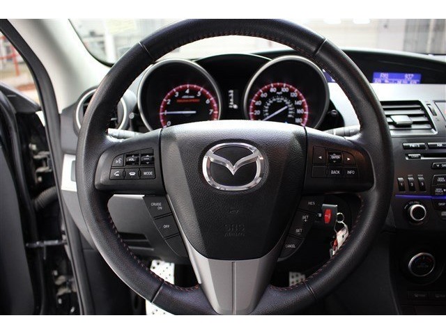 If you want an amazing deal on an amazing car that will handle just about any task, then take a look at this do-it-all 2012 Mazda Mazda3. How can you turn your back on this sizzling Mazda3? Just be careful driving it. Don't have too much fun with it or the troopers will be on your back. It is nicely equipped with features such as 4D Hatchback, 4 cyl 2.3L DGI Turbocharged DOHC, 6-Speed Manual, Liquid Silver Metallic, Black w/Sport Cloth Seat Trim, Alloy wheels, 4-Wheel Disc Brakes, ABS brakes, Air Conditioning, AM/FM radio, AM/FM/CD/MP3 Compatible Audio System, Anti-whiplash front head restraints, Automatic temperature control, Brake assist, Bumpers: body-color, CD player, Driver door bin, Driver vanity mirror, Dual front impact airbags, Dual front side impact airbags, Electronic Stability Control, Four wheel independent suspension, Front anti-roll bar, Front Bucket Seats, Front Center Armrest, Front dual zone A/C, Front fog lights, Front reading lights, Illuminated entry, Leather Shift Knob, Low tire pressure warning, MP3 decoder, Occupant sensing airbag, Outside temperature display, Overhead airbag, Panic alarm, Passenger door bin, Passenger vanity mirror, Power door mirrors, Power steering, Power windows, Rear anti-roll bar, Rear seat center armrest, Rear window defroster, Rear window wiper, Reclining Sport Front Bucket Seats, Remote keyless entry, Speed control, Speed-sensing steering, Split folding rear seat, Spoiler, Steering wheel mounted audio controls, Tachometer, Telescoping steering wheel, Tilt steering wheel, Traction control, Trip computer, Turn signal indicator mirrors, and Variably intermittent wipers. Named a contender for Motor Trend Car of the Year 2010.