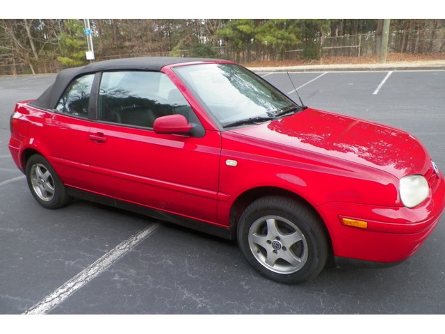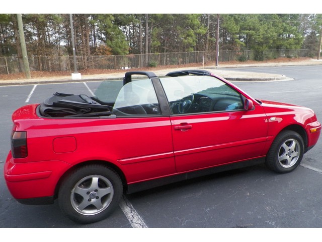 This is a 2000 Volkswagen Cabrio GLS Convertible that is Equipped with Power Windows, Power Locks, Power Steering, Power Side Mirrors, Power Convertible Top, Dual Airbags, Side Airbags, 6 Disc CD Changer, Black Leather Interior, Driver & Passenger Airbags, Side Airbags, Great A/C & Heat, and Much Much More.This Volkswagen Cabrio Convertible is in Good Condition, and is ready for a New owner! This Cabrio Convertible is Georgia owned & 100% Rust Free!! This Volkswagen Cario Convertible has 159,411 Original miles. THIS CABRIO DRIVES GREAT!! (The Miles may be slightly higher due to frequent test drives).  This Vehicle drives just like a Volkswagen Cabrio Convertible is supposed to!! It features a Red Exterior and a Black Leather Interior.(The Interior & Exterior shows wear).