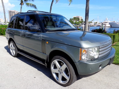 Hi and thanks for stopping by our, "No Reserve", auction for this gorgeous, extra clean and well cared for 2004 Land Rover Range Rover HSE AWD SUV with navigation, front and rear park assist and winter package. Only 2 previous owners and low miles for her year. She has been thoroughly checked out, serviced and is ready to go! There are no signs of any prior damage. This Range Rover HSE is a premium SUV that represents a shift in focus for this SUV-oriented luxury brand. Now that big SUVs have become as popular as Krispy Kreme doughnuts, Range Rover still has a cache and cult following that other gas-guzzlers can only envy. Designed to take on the roughest terrain and elements with the least amount of effort on the driver's part. "If You Don't Want One, Check Your Pulse - You Could Be Dead"! This HSE is in really good condition, very clean. It's hard to think of another SUV that offers the combination of a, solid, safe feel, sporty performance and distinctive looks. The 4.4L, V8, 282hp, engine has lots of power and smoothness at the same time while the, 5-speed, shiftable, automatic, transmission, shifts smooth, never hard shifting. As you can see in the many detailed pictures taken, the high gloss, "Giverny Green", metallic, exterior is in nice shape and shines like the Florida sun! The "Beige", leather, with dark piping, interior is in fine shape, free of rips, tears or odors. The bucket seats are wonderfully comfortable and supportive. The 22" O.Z alloy wheels look like new, no curb damage and the tires are in very good condition, full of rubber about 95% to the good. This HSE is equipped with Navigation, AWD, heated front and rear seats, 7700lb. receiver hitch, keyless entry, tinted glass, folding rear seats, dimming rear-view mirror, running boards, dynamic stability control(DSC), emergency brake assist, electronic brakeforce distribution, front and side airbags, wood interior accents, Hill Descent Control, which utilizes engine braking to control downhill speed while boulder bashing, power sunroof in fine working order, separate climate control, 12-way driver and 10-way passenger power-adjustable front seats, driver seat memory, Harman Kardon Logic 7 audio with CD changer, headlight wipers, power telescopic leather steering wheel with audio and cruise controls, fog lights, homelink, folding rear seats, external temperature display, compass, rear spoiler, cruise control, power windows, locks, mirrors, rear wiper, rear defogger, heated exterior mirrors, rear ventilation ducts, mud guards, heated steering wheel, remote rear gate release, split-oper rear gate, keyless entry, owner's manual, tachometer, roof rack, 4-wheel ABS disc brakes, floor mats, spare tire, jack,  and much more! Remember, it's not just a drive--its a lifestyle! All of our vehicles are free from any and all liens. You will receive a clean title. We also use our detailed pictures as a physical description so look at them all. Pre-sale inspections are welcomed and encouraged. Read our "terms and conditions" below. Please do not assume anything. If you have any questions about this or any of my other auctions or would like a "buy it now" price through eBay, please feel free to contact me, Avi Fraser, via email at surewecanmakeadeal@rollingwheels.com or you can call me, in the office, at 954-527-5522 and I will be happy to help you. We are always willing to negotiate and 4 SURE, WE WILL MAKE A DEAL WITH YOU! Thank you for your interest and I look forward to hearing from you! Visit our location at Rolling Wheels 125 E. Sunrise Blvd. Ft. Lauderdale, Fl. 33304. We are open, M-F, 9am-5pm. Saturday, 9am-4pm. Closed Sunday and holidays.
