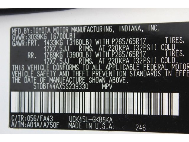 • VIN: 5TDBT44AX5S239330