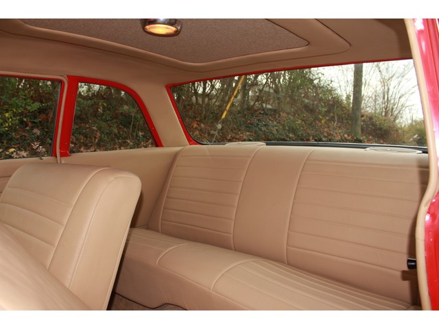 We will start off with the exterior. When you walk around this BelAir you can see that they put a lot of time and effort into making it as nice if not nicer than it was new. The fit and finish of the body panels are great with good lines. It’s covered in the Bolero Red Paint that has been buffed and polished to a deep rich shine. At the time of the restoration they installed new bumpers as well as other new chrome. All the stainless was removed, cleaned, polished, and they reinstalled. New weather stripping was also added to ensure a good fit of the doors and trunk. The final exterior touch is they 18” and 20” Coys on the corners.