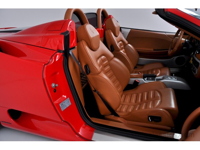 Exotic Classics is proud to offer this 2003 360 F-1 Spider Red with Saddle interior with only 5,000 one owner miles. Factory cost options include 6 CD Changer, Daytona Style Seats, Power Seats, Colored Upper Dashboard, Red Calipers, Front & Rear Challenge Grill, Scuderia Ferrari Shields, Roll Bar Upholstery Color, Leather Rear Shelf/Door Mould, Modular Wheels, and 3M Nose protection.