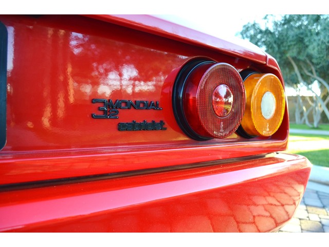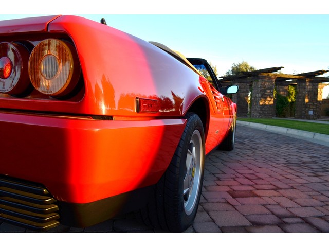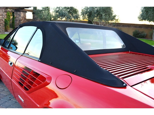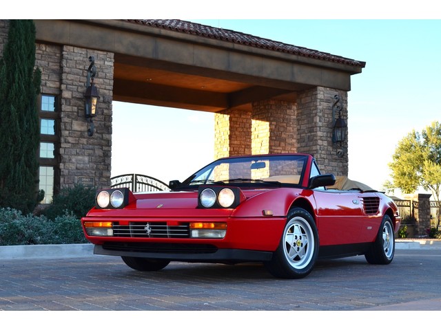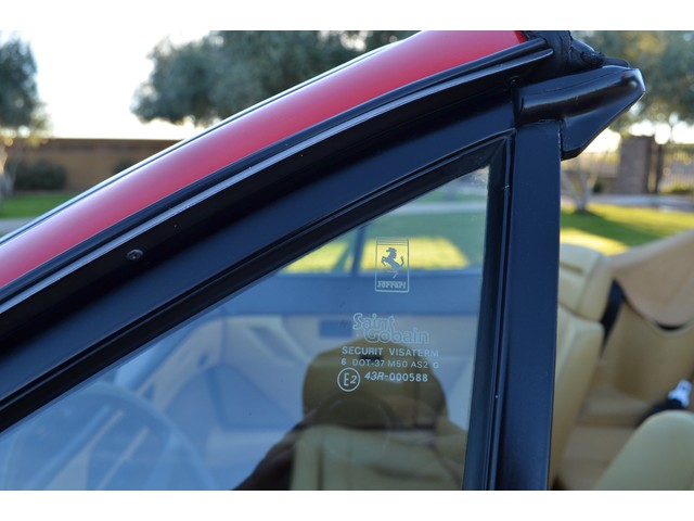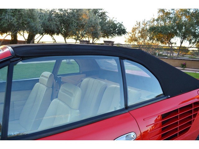 European Motor Studio is proud to offer this stunning Rosso Corsa over Tan Connolly hides 1988 Ferrari Mondial 3.2 Cabriolet. This gorgeous Cab left the Marranello production line in November of 1987 and was invoiced to Ferrari North America where it was then sent to Ferrari of Beverley Hills. The car sold to its first owner in 1988 where it lived in Beverley Hills until European Motor Studio brought the car to AZ. In June of 1999 the second owner purchased the car and kept the car at his home in Beverley Hills until it was traded in on a newer model at the Beverley Hills Ferrari dealership this year. The car has been meticulously maintained at the Ferrari dealership and has only traveled a total of 16,980 miles from brand new. The car has never seen snow, or any weather elements and is completely 100% original in every way. Except for a brand new soft top just put on the car, this Mondial Cabriolet has never been touched, damaged or wrecked. The car has brand new tires, newer brakes, brand new soft top and has just undergone a full belt and service at the Ferrari dealership. The runs and driver beautifully, starts right up and idles very smooth. The car accelerates flawlessly and shifts with ease. The transmission is very tight and precise and free from any grinding or slipping. The clutch feels excellent, there is no slipping of any kind, the suspension feels incredibly tight and precise, the handling of the car is so superb and free from any drifting or vibrations. All of the electronics are working as they should on the car, the headlight motors work all in sync with each other, all of the taillights, brake lights, headlights, fog lights, turn signals, reverse lights and side marker lights are all working. There are no dash lights on and the car is completely free from any mechanical issues. The power windows, mirrors, and door locks are all function as is the AC system. The Rosso Corsa paint is absolutely stunning in its original condition. Except for a small hairline scrape on the front nose where the license plate would sit which has been touched up, a tiny hairline scratch on the front left bumper corner, a tiny hairline crack on the lower black skirt, one tiny hairline scratch on the back left bumper and a small chip out of the corner of the drivers door, the paint shows nearly perfect. The interior is still the original factory Connolly leather and shows beautifully. The drivers seat does show some very slight crease marks but absolutely no cracking or damage of any kind. The rest of the seats look excellent, all of the carpets are original and 100& perfect and stain free. All of the switches and running gear look excellent, and the leather dash top looks perfect and is still soft and supple. This Mondial still retains all of its original Ferrari stamped glass all the way around and is completely clear and damage free. All of the rubber on the car is in excellent condition showing almost no age and still fairly soft. All of the original equipment is present with the car, the original owners hand book, the original black Ferrari master key, the original Ferrari jack in its original black bag along with the original spare tire, the leather convertible top boot and the original black canvas interior cover. These Mondial Cabriolet’s make for an outstanding road car, they offer excellent performance from a reliable V8 engine and comfortable seating for 4 people. With the prices of earlier Ferrari’s reaching huge sums of money, these later cars make outstanding buys. This car has a completely clean and clear carfax and clean and clear title.