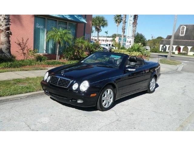 2003 Mercedes Benz 320 CLK Convertible For Sale ( two owner car with only 63,608). 3.2L V6 engine, automatic transmission, 4 wheel disc brakes, factory 16 alloy wheels, sporty Capri Blue Metallic exterior, black canvas power top with glass rear window, color keyed power remote driving mirrors with turn indicators, key-less entry, dark gray leather interior, power bucket seats, tilt steering column, cruise control, power headrest roll protectors, AM/FM/Cassette, factory CD changer stereo, owners books. Sporty and fun, don't miss this one!!!