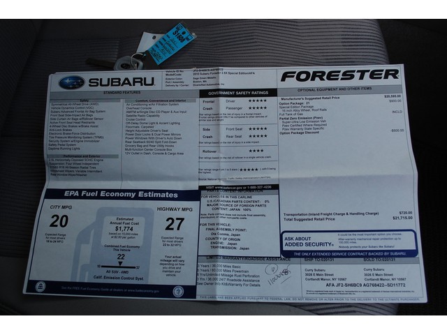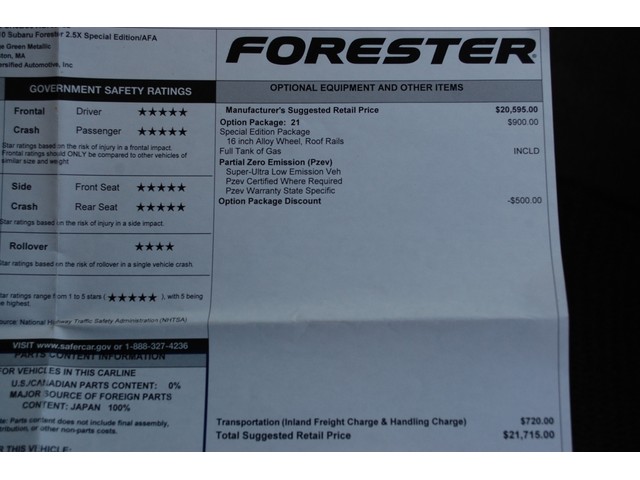 Subaru Forester 2.5XS SPECIAL EDITION 5 Speed Manual Green 50307 4-Cylinder B4, 2.5L; SOHC2010 SUV New Milford Motors 860-799-8335