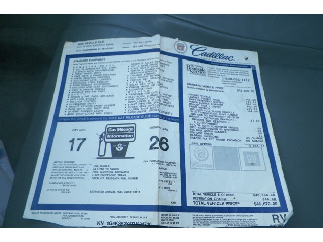 PLATINUM AUTO SALES proudly presents this 1996 Cadillac Seville SLS that is Equipped with Power Windows, Power Locks, Power Steering, Power Side Mirrors, Power Sunroof, Cruise Control, Leather Interior, Wood Interior Trim,  Disc CD Changer, AM-FM Radio, Dual Airbags, Rear A/C Vents, Child Safety Locks, Factory Chrome Wheels and Much Much More. This Cadillac Seville SLS is in Good Condition and is Ready for it's 2nd Owner!! This Cadillac Seville SLS only has 99,582 Original miles. (The Miles may be slightly higher due to frequent test drives).This 1996 Cadillac Seville SLS is the automaker’s luxury four door Sedan. It features revised interior and exterior styling this year and updates to the vehicle’s suspension system for improved handling. Under the hood, it features a 4.6-liter V8 engine. Standard equipment includes auto climate control, cruise, and tracation control!!  For the safety-conscious, the Seville SLS boasts a long list of equipment, including front, ABS, child safety rear door locks, and traction control. This Vehicle drives just like a Cadillac Seville SLS is supposed to!! It features a Gold Exterior and a Tan Leather Interior. (The Interior & Exterior shows minor wear) PLEASE SEE ALL PICTURES BEFORE BIDDING. This vehicle's engine and transmission are in Great working condition. The transmission shifts smooth. The engine does NOT OVERHEAT and has no known defects. The winner will be provided with all documentation and a 30 day Temporary Tag. We offer free airport pick-up for all winners(Atlanta Airport). Please call in advance to arrange for airport pick-up. If you need to see additional pictures please contact us and we will e-mail them to you ASAP.