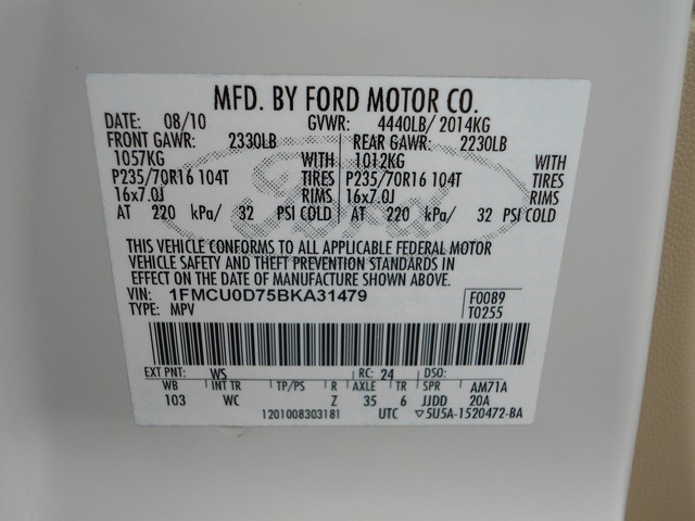• VIN: 1FMCU0D75BKA31479