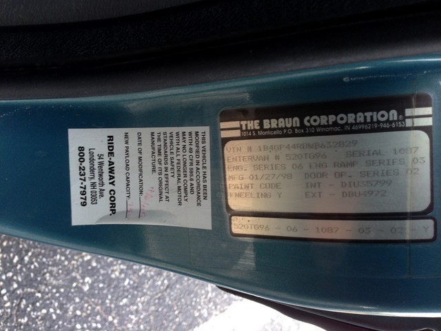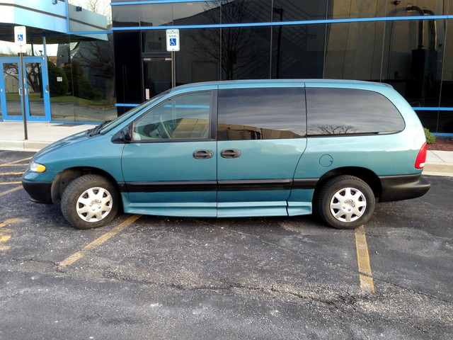 This is a very nice Dodge Caravan with a Braun wheelchair conversion. It has a power side ramp that opens the door and folds down the ramp with a touch of the switch on the dash board. The ramp functions perfectly, folding up and down with no issues. The van has a 3.3 liter 6 cylinder engine which runs well, does not smoke or use any fluids. Auto trans shifts smoothly, a/c works...so do all the power windows, etc.
