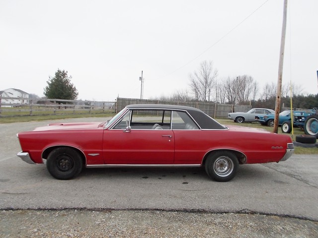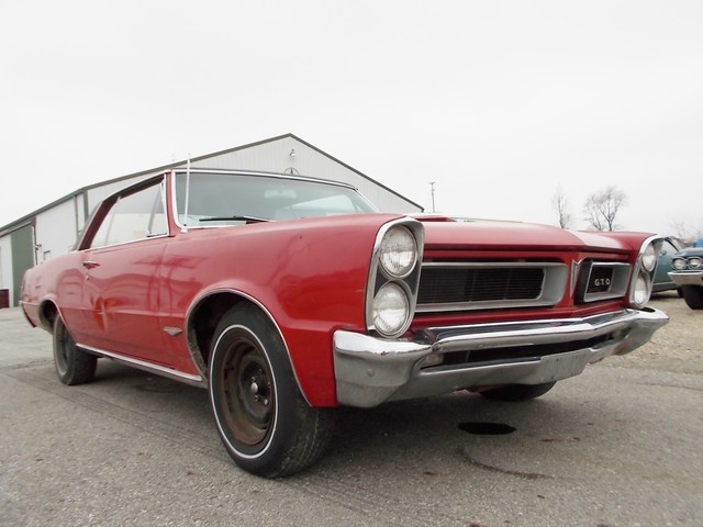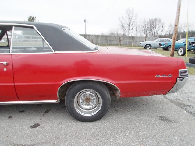 REAL 65 GTO THAT IS PRETTY DARN SOLID AND COME WITH PHS DOCUMENTS TO ALSO PROVE GTO, SEE 3RD TO LAST PHOTO. SHOWS IT CAME NEW IN RED WITH BLACK INTERIOR AND CONSOLE, FACTORY RPM GUAGE, WR CODE 68' 389, 4BBL HOLLEY, RIDE AND HANDLING SPRINGS AND SWAY BAR, 3 SPEED MANUAL TRANS AND SAFTY TRACK (POSI) REAR WITH 308 GEAR. IT NOW HAS A 68' 350 4 BBL HO PONTIAC ENGINE THAT HAS 320 HP FROM FACTORY AND 4 SPEED MUNCI EITHER M20 OR 21. I THINK M20. IT RUNS GOOD AND DRIVES BUT HAS VERY WEAK BRAKES AND BAD TIRES. SO , CANT DRIVE HOME BUT WITH NEW TIRES AND BRAKES YOU HAVE A DRIVER. IF YOU DONT LIKE THE 350 ITS A GOOD ENG THAT SOMEONE WILL GIVE BUCKS FOR SINCE ITS AN H.O.