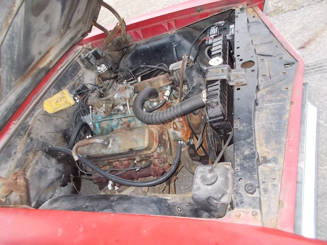 THE GUY I BOUGHT IT FROM HAD SINCE 1976 AND HAD SAT SINCE LIKE 87. HE GOT IT OUT AND STARTED MESSING WITH WHEN HE LOST HIS STORAGE. HE CLEANED RADIATOR , GOT A NEW MASTER CYL BUT STILL HAS WEAK BRAKES, PUT PLUGS AND POINTS IN IT. HE ALSO PUT NEW PAIR OF FLOWMASTER MUFFLERS ON, SOUNDS GREAT. THEN SOLD IT TO ME. HE HAD SLIDE INTO A POLE YRS AGO AND DAMAGED RIGHT QUARTER. FIX THAT, THE REAR OF THE LEFT SIDE BEHIND WHEEL, PATCH THE WHEEL WELL AND PUT A TRUNK PAN IN, THAT WILL BE THE WORST OF THINGS TO REPAIR. UNDER THE V TOP IS SOME BUBBLES THAT MAY TURN INTO SOME HOLES AND THE RIGHT FENDER IS BUBBLED FROM EARLIER REPAIR. ONE DOOR CORNER HAD A LIL SPOT OF RUST. THE REST LOOKS REALLY GOOD AND SOLID. NICE HOOD, NICE INNER FENDERS AND ENGINE BAY, NICE TUNK LID NICE TAILPANEL AND STRAIGHT GRILL. FRAME IS SOLID AND THE SIDE SWIPE IS THE ONLY WRECK IT WAS IN.