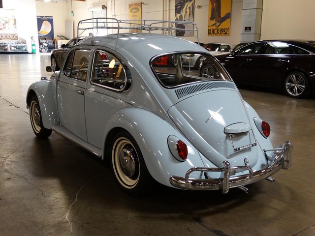 Crevier Classic Cars is pleased to offer our 1967 Volkswagen Beetle Sunroof Coupe. This beautiful example has been restored with attention to detail and freshly completed. Finished in its original color of Bahama Blue, with lovely and correct Black Interior. Color coded running boards as well as fender welt trim add to the charm of this VW. Original German Deluxe bumpers and over-riders, original hella headlamps, all trim and bright=work is fresh and highly detailed, and topped with a Flat4 brand stainless steel luggage rack. The deluxe interior includes a rare tissue dispenser, 12 Volt AM/FM radio, under-dash storage rack, correct basket weave carpets, retractable saftey belts. Original dealer paperwork and books as well as lots of receipts and documentation. New correct glass and weather trim all around, the perfect new correct headliner finishes off the beautiful new interior. Many correct and specific 1967 only features intact. The car rides on four brand new tires wrapped around four correctly finished white and black factory wheels as well as a full size matching spare. Original front and rear aprons, all factory tags, an original West Germany made Beetle, all around ready to show, drive and enjoy. Please contact us at 714-426-0238 or mark@crevierclassiccars.com with any questions