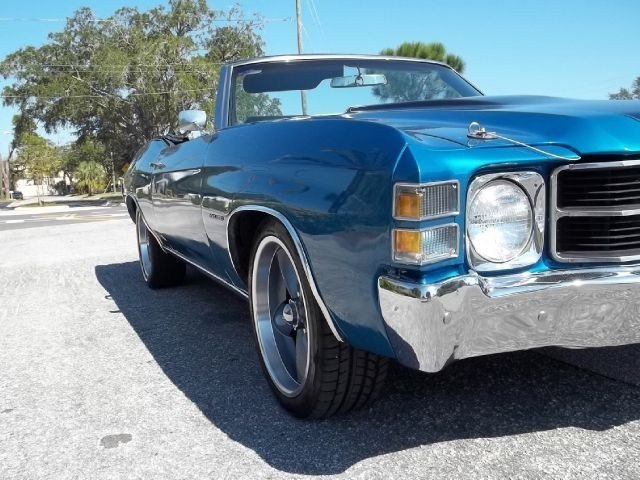 1971 Chevrolet Chevelle Malibu Convertible For Sale!!! 350 Cubic inch V8, Vortech center bolt heads, GM aluminum intake, Holley 4 barrel carburetor, headers, dual exhaust, 700R4 overdrive transmission with B&M shifter, 12 bolt posi rear end, A/C, power steering, power disc brakes, 18 Show Wheels Gray center alloy wheels, rally stripe package, chrome sport mirrors, power convertible top, alarm system with fob, deluxe steering wheel, bench seat interior, auxiliary tachometer and gauges, custom Alpine AM/FM/CD sound system with I-pod hookup. Nothing beats driving a classic Chevrolet convertible, drop the top and listen to the tune of its V8 engine roaring down the road!!!