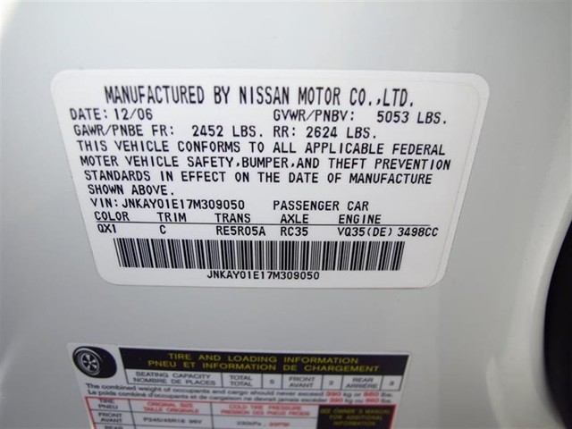 Nice 2007 Infiniti M35 sedan with the Journey and Technology Packages. 275HP V6 engine with 5speed Auto Tranmission w/manual Shift Mode and downshift rev matching. Complete with Infiniti's Journey Package featuring: Climate controlled front seats, Xenon HID headlights with auto leveling Adaptive Front lighting System (AFS)and branded Truck mat. Technology Package features: Bose Stereo Sound System with 8 speakers, RearView Monitor and Infiniti's navigation system. This M35 has been a well maintained automobile and it shows from it's interior and exterior to the engine and transmission. Check out the following pictures and then give Skip or Rich a call toll free at 866-923-3421. You'll be glad you did.