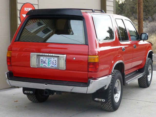 This is one of the nicest 1991 Toyota 4 Runners you will find any where.  Bought new in Oregon and has been owned by the same family since new, very well maintained with lots of records.  The paint and  the interior are in exellent condition. The engine compartment is very clean and completely stock. This 4 Runner is rock solid, runs like a top and is a rust free original Oregon car.