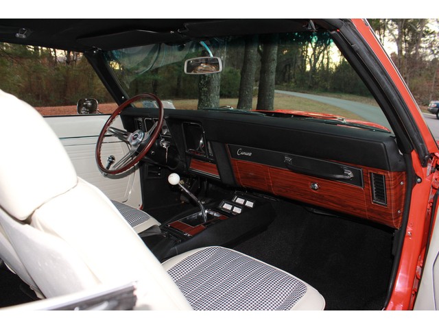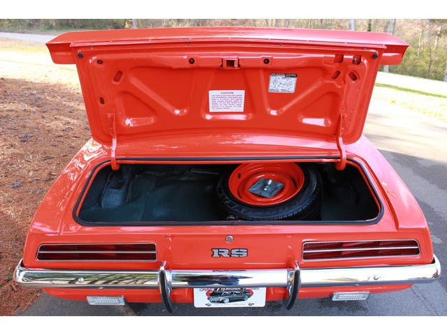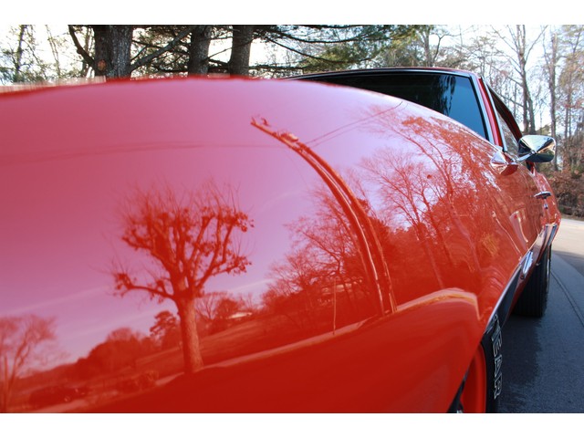 We will start off with the exterior of the Camaro. As we said it was pulled all the way down, worked, fitted and then pulled back apart to be painted. It’s covered in Hugger Orange which was the factory paint scheme when it hit the floor in ’69. The paint has been buffed and polished to a deep rich shine, and it is slick as ribbon with a mirror finish. The glass was installed with all new seals as well as new felt for the side glass. All the stainless looks new or like new. It has new bumpers as well as new emblems and trim. All the headlight doors have been rebuilt and work as they did when new along with the rest of the lights. The final touch is the correct style wheels with the small caps and Goodyear Tires.