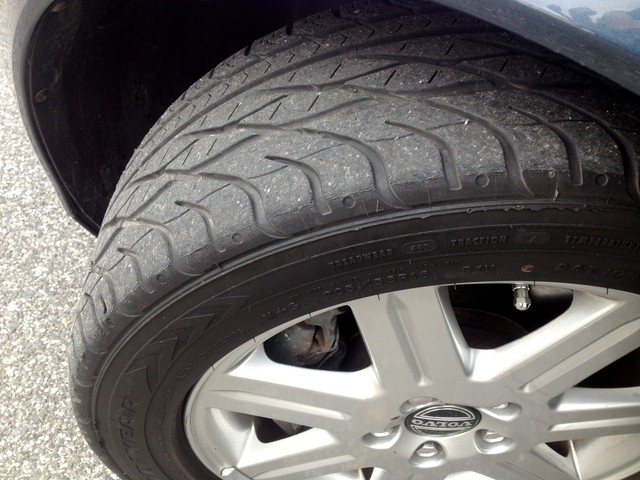 Tires are mounted on aluminum wheels and have 75% tread life left.