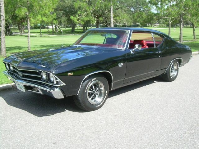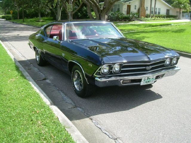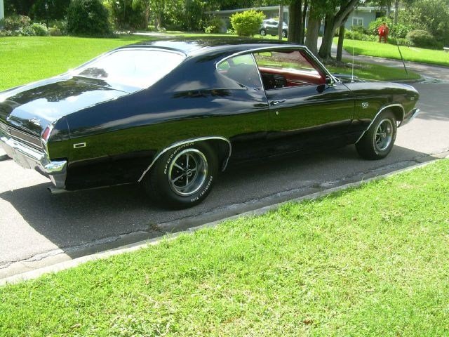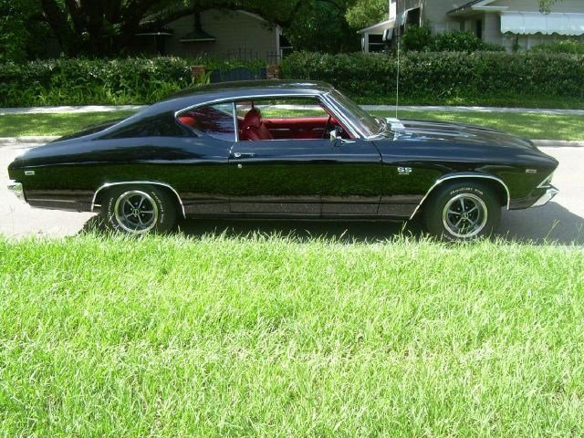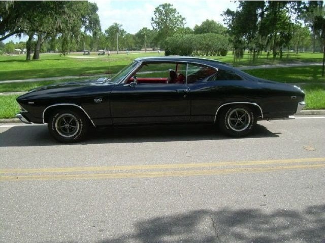 1969 Chevy Chevelle SS 396 for Sale. A Chevy Muscle Car with a 396, automatic, power steering, power disc brakes, an Edelbrock Performer aluminum intake, Holley dual feed carb, big tube headers into throaty dual exhaust, chrome air breather and a set of DART aluminum valve covers complete the engine bay. The interior finished in contrasting red vinyl remains stock with buckets, console, tilt steering column, and an AM/FM stereo cassette. The exterior in black is set off by a set of factory mags carrying B.F.Goodrich raised white letter radials in 225/70R 14. Sharp looking, great sounding, and very responsive! Ready to cruise and enjoy! Chevy and Muscle Car enthusiasts, don't let this Black Beauty slip away!