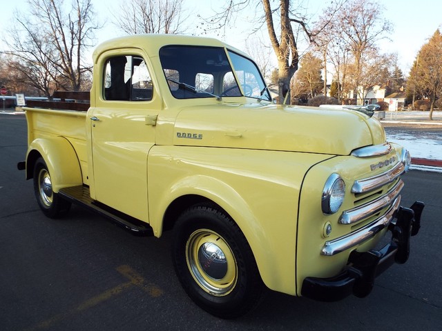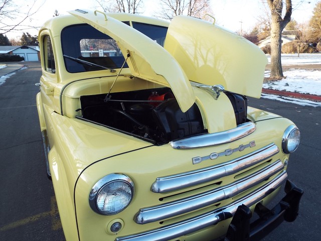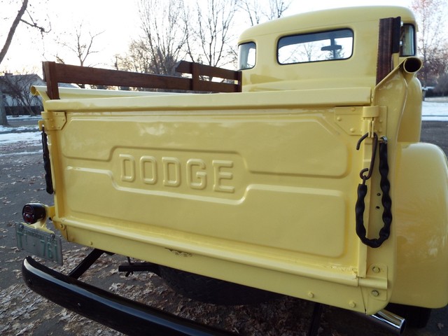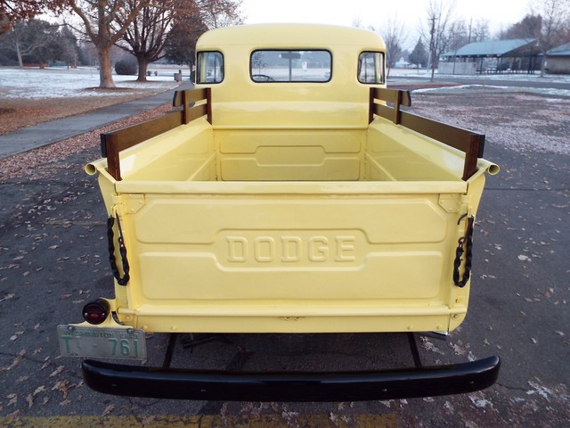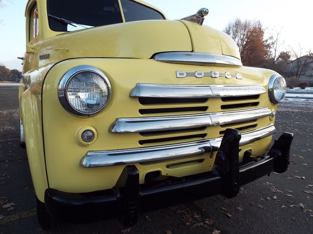 This Truck is SHARP !! This 1949 Dodge B-1-B 1/2 Ton Pickup is a great investment opportunity and it is priced right ! It is in BEAUTIFUL condition from top to bottom and from front to back and is ready for your local show and shine. It will not disappoint someone looking for a clean example of a sought after and hard to find collector Truck that is not seen at every stop light for sure. If you have been looking but cannot find a cool vintage truck worthy of your hard earned money look NO further because this is the one ! The Sun Yellow exterior finish on this Truck is EYE POPPING BEAUTIFUL showing very little to no wear and is still bright and shiny and looks STUNNING as you can clearly see in the picture and video above and the 100 ADDITIONAL PICTURES BELOW ! All of the light lenses and reflectors are clear, bright, UNCRACKED and BEAUTIFUL !! The CLEAN - SOLID bed is in GREAT condition with wood that was completely replaced during the restoration and it still looks NICE as well as the NICE matching Original Style Wood bed rails (Racks). Check out the BEAUTIFUL - ORIGINAL - color matched - Dodge Steel wheels with good ORIGINAL Dodge stainless steel wheel covers and stainless steel trim rings wrapped in BRAND NEW Terramax Steel Belted Radial tires, boy does this combination look OUTSTANDING on this truck and really retains that clean "factory original" look !! The exterior trim on this pickup is in NICE condition for being original including VERY NICE ORIGINAL Gloss Black front and rear bumpers, VERY NICE ORIGINAL Gloss Black running boards, NICE ORIGINAL  chrome "Ram" hood ornament,  NICE ORIGINAL Driver's side view mirror, NICE ORIGINAL Stainless Steel grill trim and good ORIGINAL badging. This vehicle is in nice mechanical condition and it runs and drives VERY WELL. It is solid with respect to the overall mechanical condition as well as the overall cosmetic impression. I looked underneath and also included 100 ADDITIONAL PHOTOS BELOW THIS DESCRIPTION. Please pay close attention to the pictures and this description as they will answer most if not all of your questions. If you need to speak to me my name is Ross and my telephone number is (208) 866-4055 or you can email if you prefer. As always I tried to get as thorough and in depth with the photographs as possible.