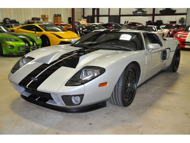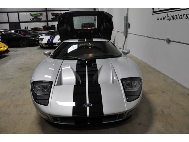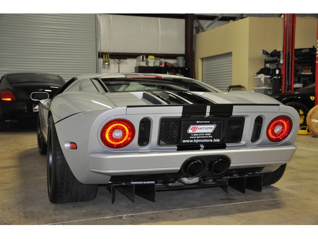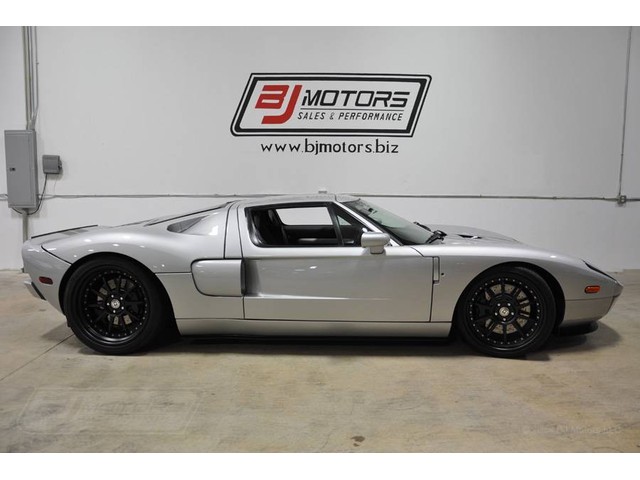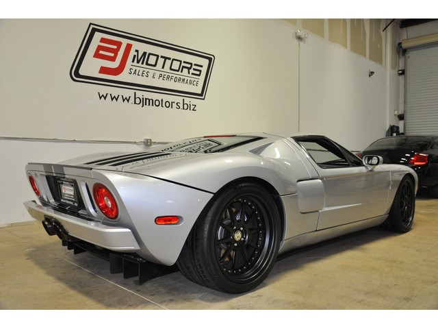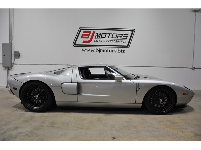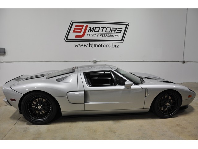 2005 Quicksilver Ford GT - One of the harder to find colors, This Ford GT was built by A.R.T in Buda,Texas and has less than 700 miles on the twin turbo build. This car has a ton of extra goodies; hot seat buttons, Project 321 Carbon Fiber side sill plates, AEM boost gauge, Lloyds Ford GT floor mats, Project 321 Billet caps on the engine bay components, custom transcooler, competition Matte Black Wheels, Michelin PS2's, turbo hot side components ceramic coated Black, cold side polished aluminum. The car will achieve roughly 900 hp on 93 octane pump gas and capable of achieving much more with proper tuning on race fuel. Custom Billet intake manifold with a single 90mm Accufab Racing throttle body supported by air craft quality Adel Wiggins Clamp, Custom ART exhaust, twin Garrett ball bearing turbochargers, twin Tial 44mm wastegates, and twin Tial recirculating blow off valves. This GT is one of the nicest Twin Turbo cars available on the market today. This is the second lowest production Ford GT on the market. Ford only produced 153 of Quicksilver and only 89 were built in this particular color and options. Car comes with car cover. - See more at: http://bjmotors.biz/2005-ford-gt-40-quicksilver-twin-turbo-hard-to-find-car-for-sale-1960.html