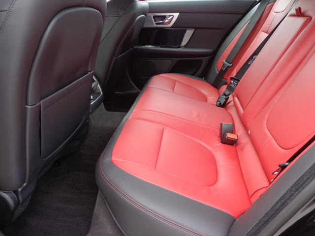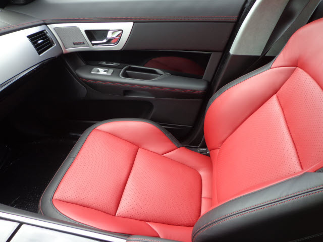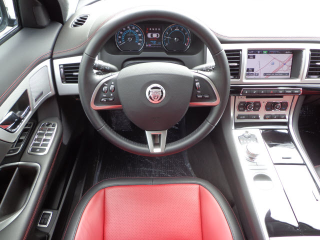 The Jaguar XF you are looking at here is a 2013 Jaguar XF in Ultimate Black with a Jet and Red two tone sports interior.  This car has the 2.0 L I4 Turbo engine which produces 250 horsepower.   The Jaguar XF is a rear wheel drive car and has a 8 speed automatic transmission.    This particular car, in addition to all the standard features, is fitted with the following additional packages and options.