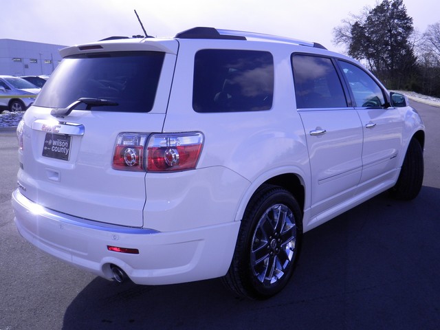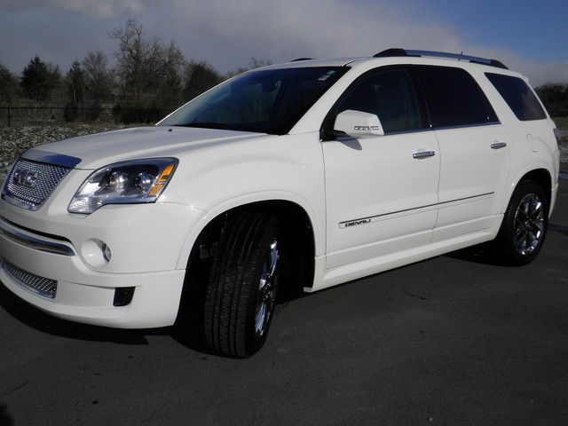 JUST IN ON TRADE IS THIS 2012 GMC ACADIA DENALI FWD 3.6L V-6 6SPD AUTOMATIC SUMMIT WHITE IN COLOR WITH LIGHT TITANIUM LEATHER TRIM INTERIOR, ONLY 18,374 MILES AND IT'S GM CERTIFIED!! AN EXTRA 12 MONTH 12,000 MILE WARRANTY ON TOP OF THE BALANCE OF THE 3YR OR 36,000 MILE WARRANTY AND YOU GET THE 5YR OR 100,000 MILE POWERTRAIN GM WARRANTY, AND A 2YR OR 30,000 MILE GM PREFERRED MAINTANCE PLAN INCLUDED, 7 PASSENGER SEATING WITH 2ND ROW CAPTAINS CHAIRS AND 3RD ROW REAR SEAT, HEATED AND COOLED SEATS DRIVER AND FRONT SEATS, TITL AND TELESCOPIC STEERING WHEEL WITH CONTROLS, HEADS UP DISPLAY, `DUAL DUAL CLIMATE CONTROL WITH REAR AIR AND HEAT, XM RADIO, UNIVERSAL HOME REMOTE, REAR SEAT AUDIO CONTROLS WITH HEAD PHONE CONTROLS, BOSE AUDIO PREMIUM SOUND WITH USB PORT AND AUX INPUT JACK, REMOTE VEHICLE START, BLUETOOTH FOR PHONE, LEATHER AND WOOD ACCENTST, TECHNOLOGY PACKAGE, HID HEADLAMPS, TOUCH SCREEN NAVIGATION WITH REAR VIEW CAMERA DISPLAY, 20" CHR0ME-CLAD ALUMINUM WHEELS, POWER REAR LIFT GATE, ROOF RACK SIDE RAILS, POWER SUNROOF WITH 2ND ROW SKY LIGHT, FOG LAMPS, ULTRASONIC REAR PARK ASSIST, CLASS II TRAILER HITCH, AND SO MUCH MORE, CALL OR EMAIL SOON ON THIS HARD TO FIND 18,374 DENALI 2 SETS OF KEYS & REMOTES INCLUDED AND THE ORIGINAL OWNERS MANUAL.
