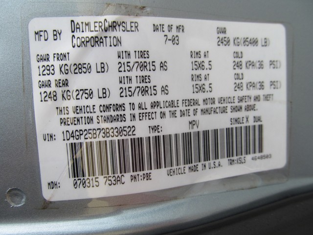 • VIN: 1D4GP25B73B330522
