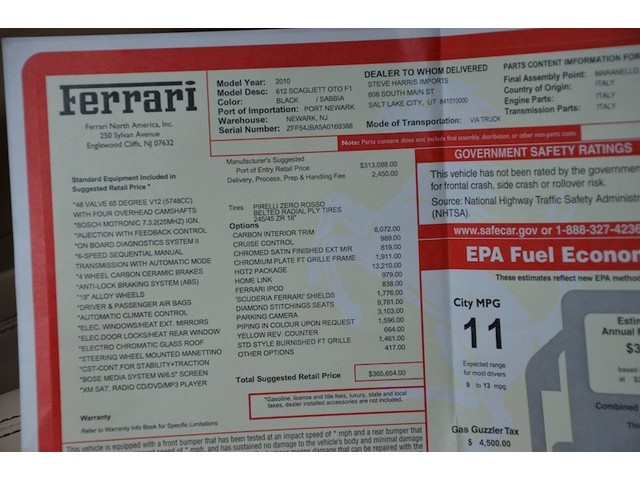 2010 Ferrari 612 Scaglietti Nero Black/ Sabbia $365,654.00 MSRP!! Loaded up with options clean history no stories just a goregous 612 ready for a new home in a collectors garage!