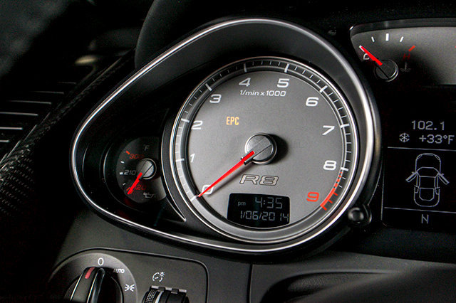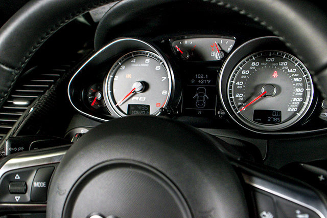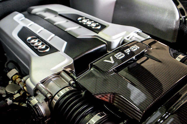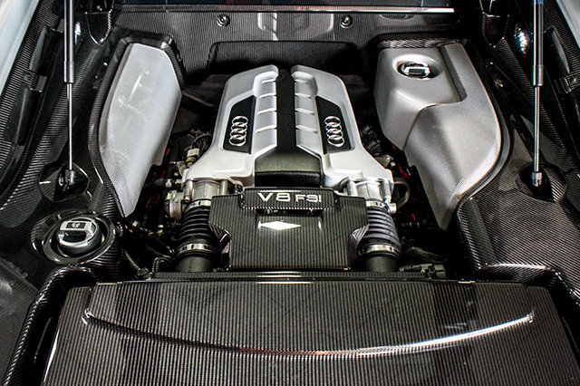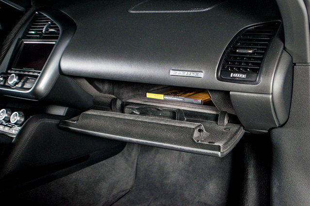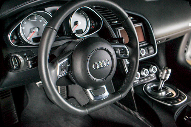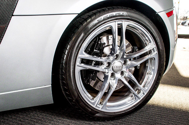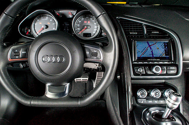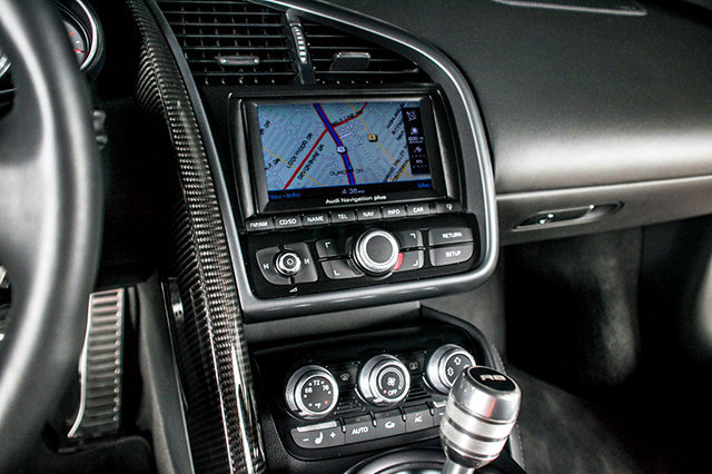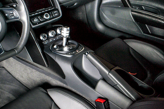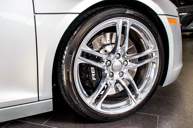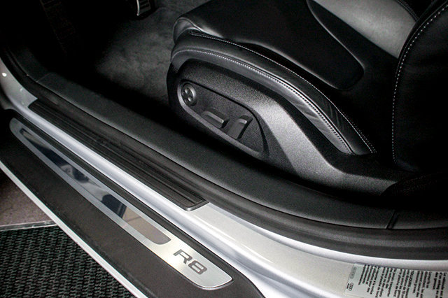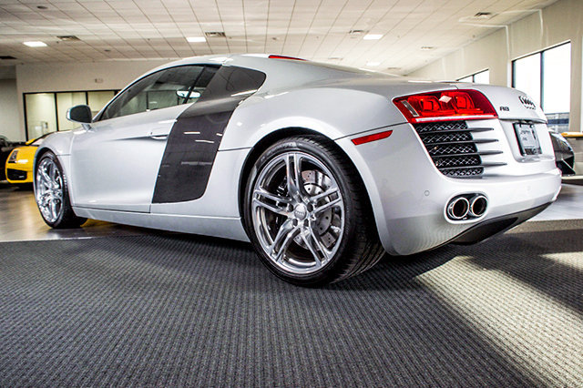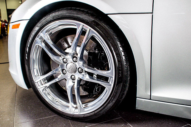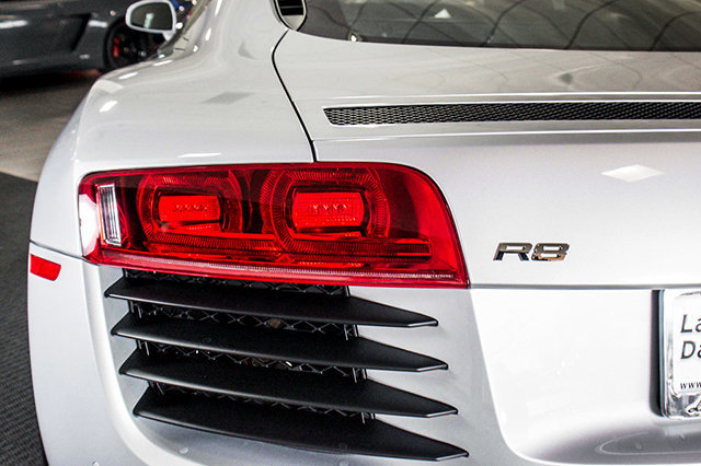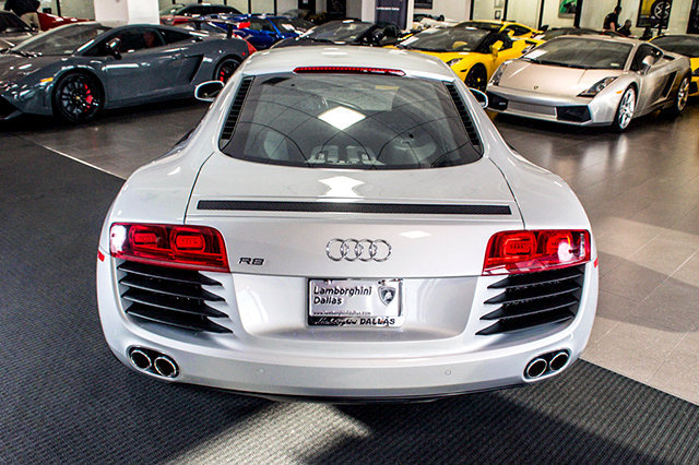 This is a smoke free Carfax certified 2009 Audi R8 Cpe, equipped with a 4.2L 420HP V8 engine and a 6-speed R-Tronic (Auto & Paddle shift) transmission. This car is finished in a sharp Ice Silver Metallic exterior color and Black full leather interior along with Carbon Fiber trim throughout.
